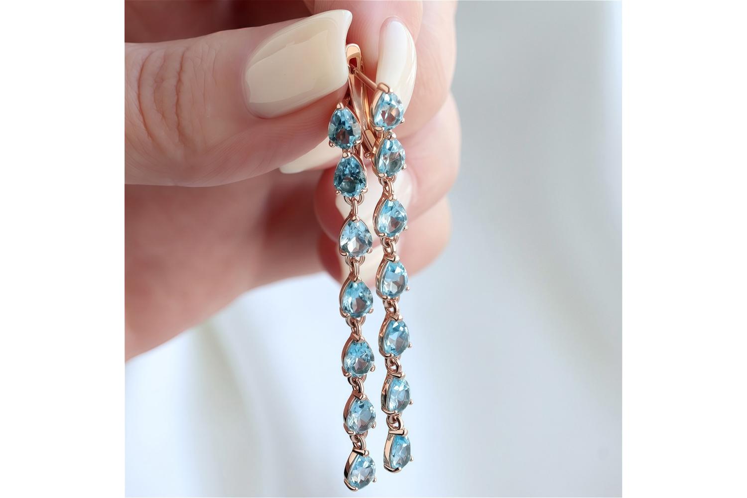 Мастера компании NEWGOLD, приложив всё свое мастерство и искусство, создали для Вас на нашем собственном производстве Серьги Дорожки из красного золота с 14 топазами swiss.