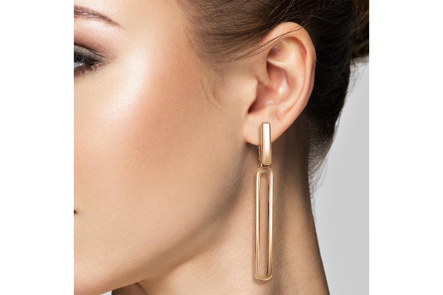 Мастера компании NEWGOLD, приложив всё свое мастерство и искусство, создали для Вас на нашем собственном производстве Серьги Прямоугольники из красного золота без вставок.