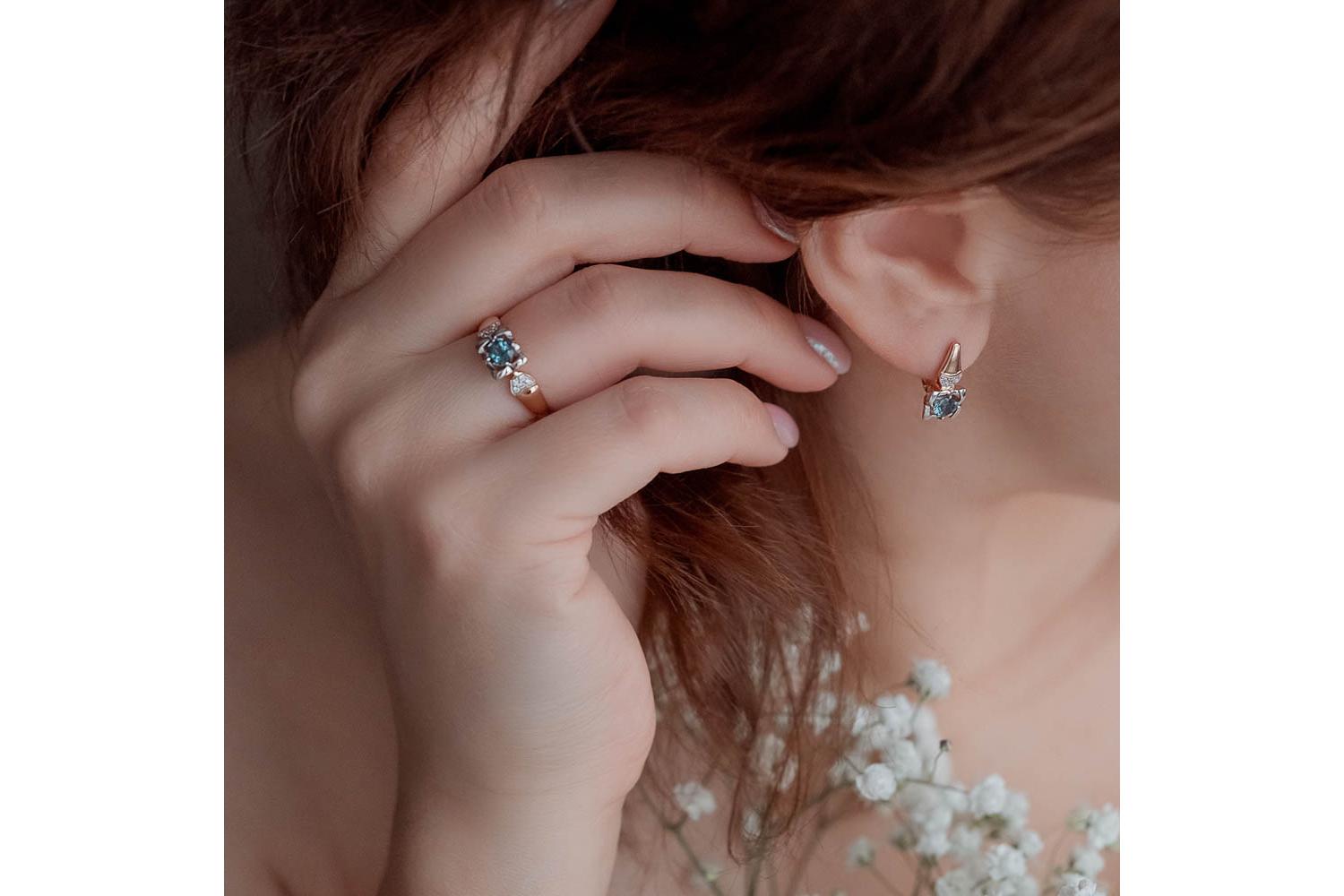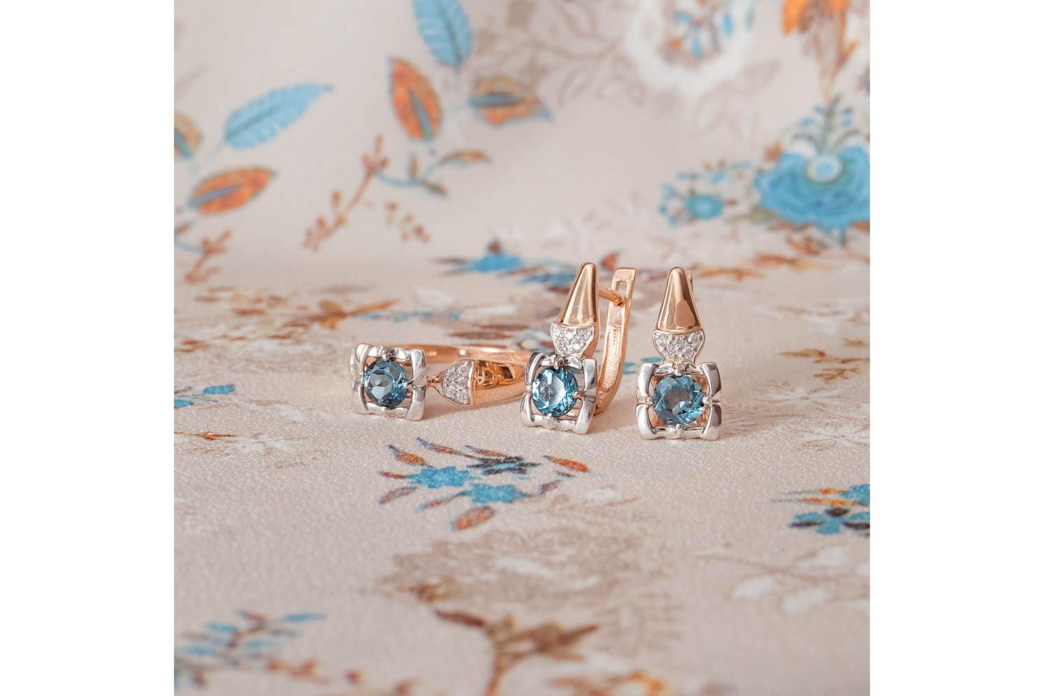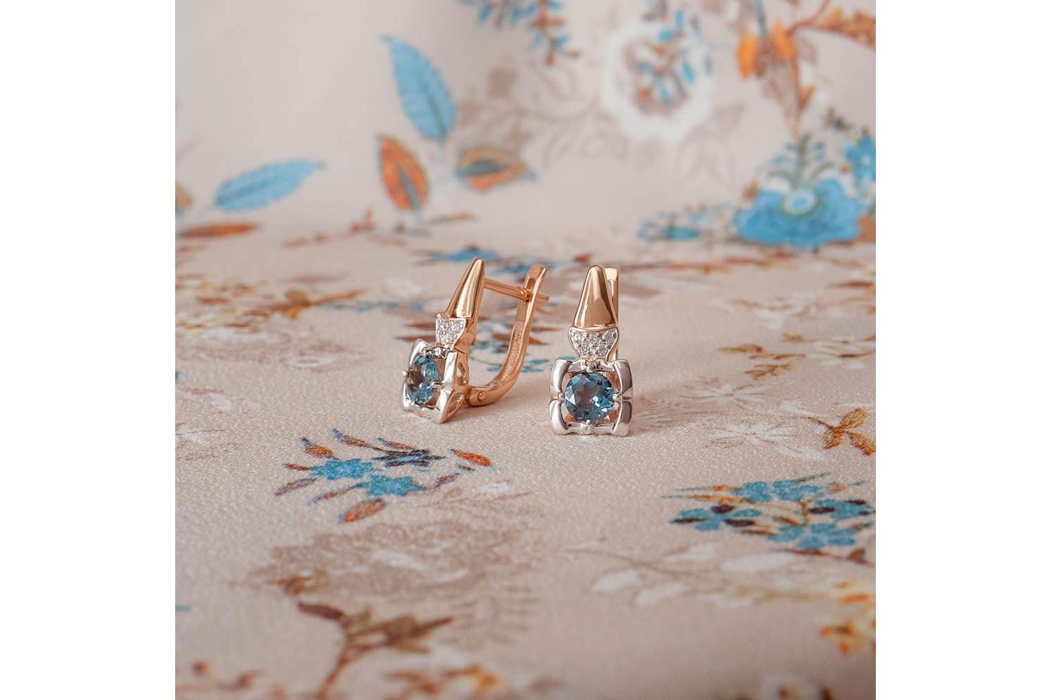 Мастера компании NEWGOLD, приложив всё свое мастерство и искусство, создали для Вас на нашем собственном производстве Серьги из красного золота с 2 топазами лондон и 10 фианитами.