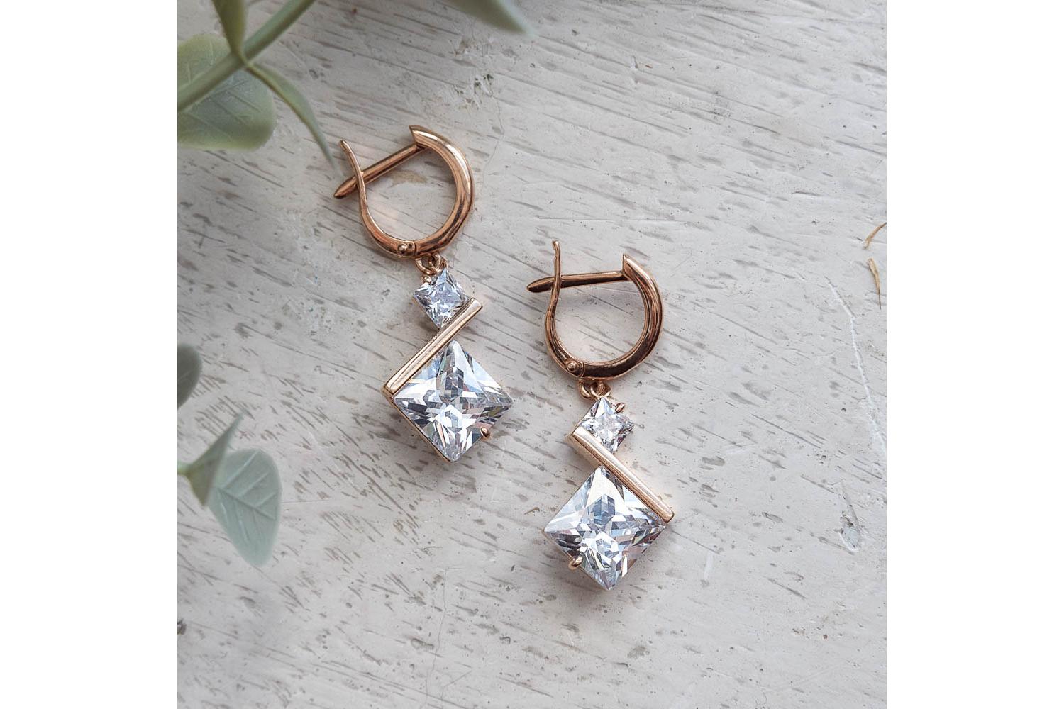 Мастера компании NEWGOLD, приложив всё свое мастерство и искусство, создали для Вас на нашем собственном производстве Серьги из красного золота с 4 фианитами.