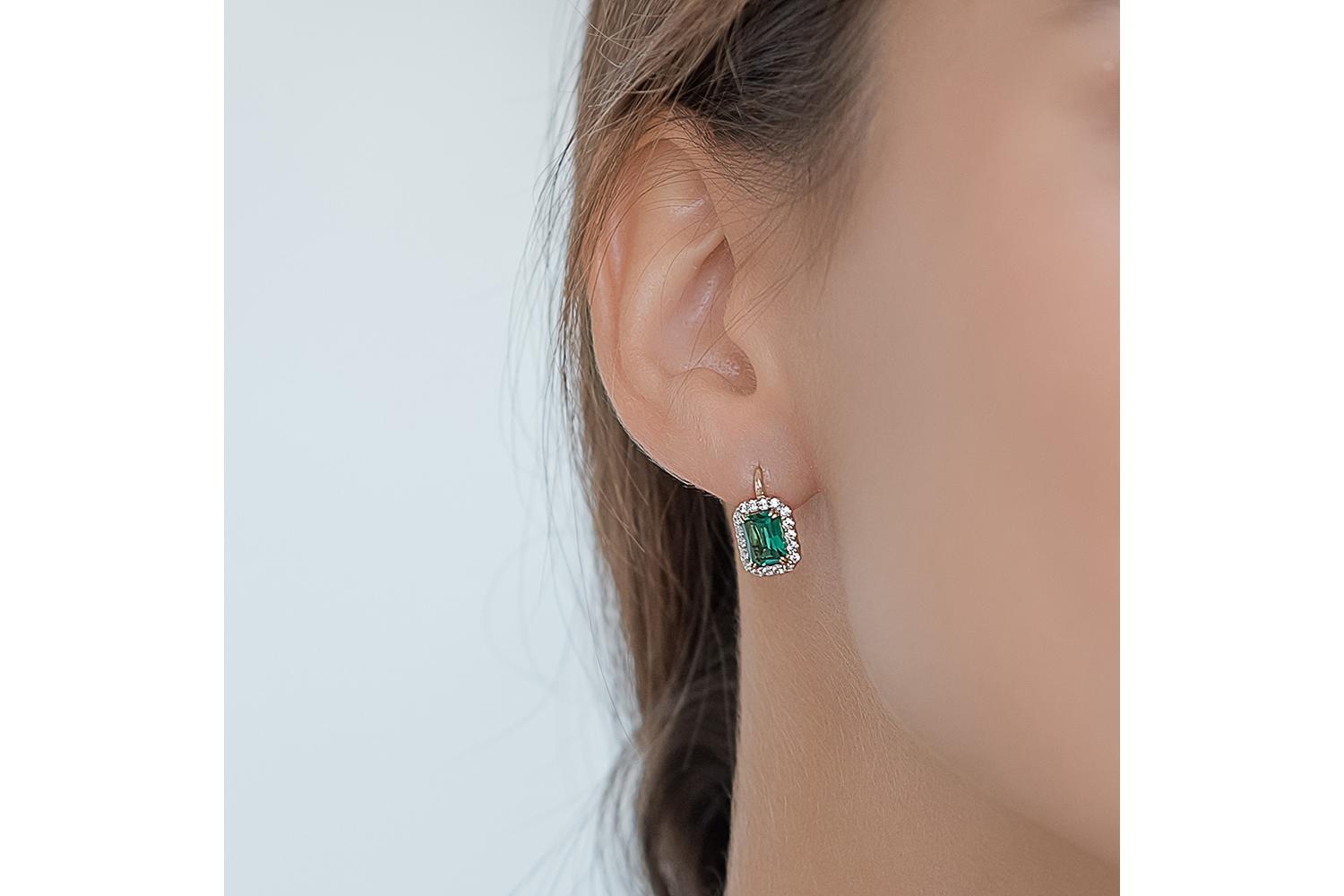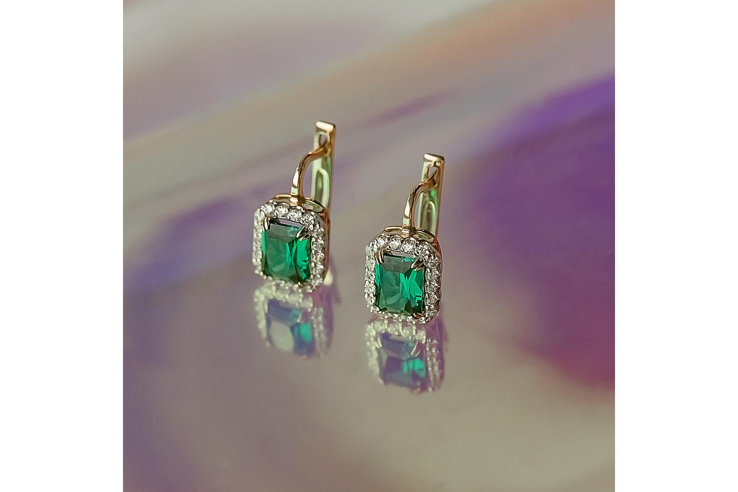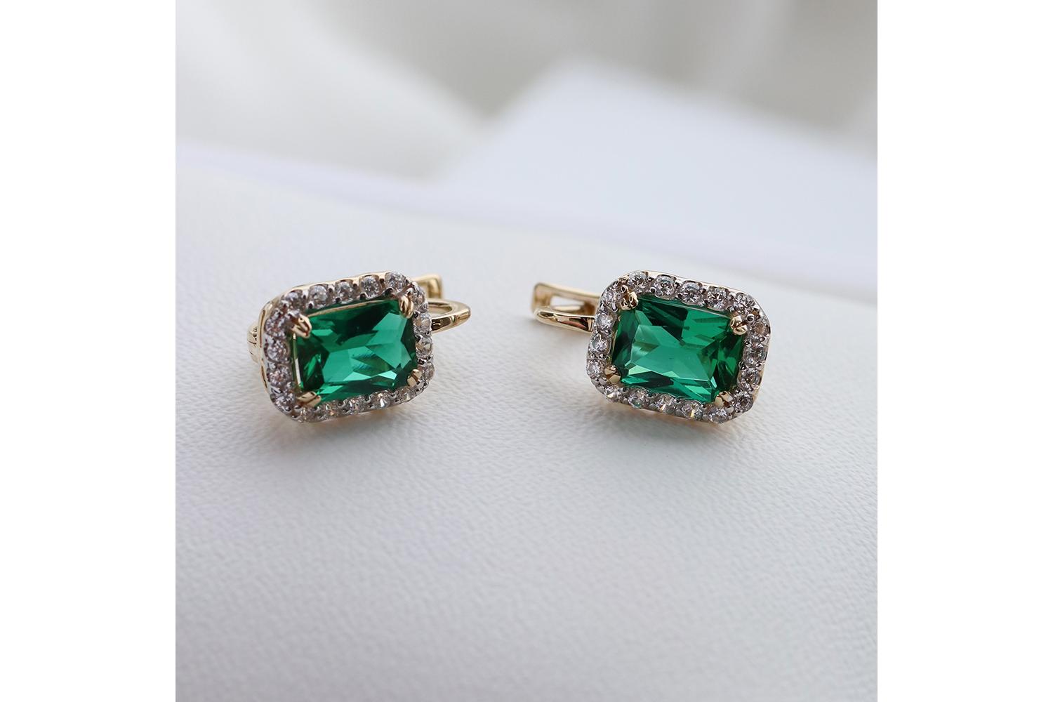 Металлом для серёжек выбрано жёлтое золото - благородный сплав, который великолепно оттеняет насыщенный зелёный цвет изумрудов. Филигранная работа ювелиров проявляется в тончайших деталях - изящных изгибах замочка, ажурной боковой поверхности и безупречной посадке камней.