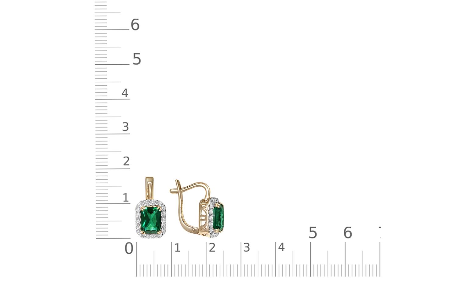 Изысканные серьги - истинное воплощение ювелирного мастерства. Центральным элементом украшения служат два изумительных изумруда зелёного оттенка огранки "октагон". Драгоценные камни обрамлены россыпью белоснежных фианитов, создающих эффектное обрамление - словно россыпь мерцающих звёзд вокруг изумрудных кристаллов.