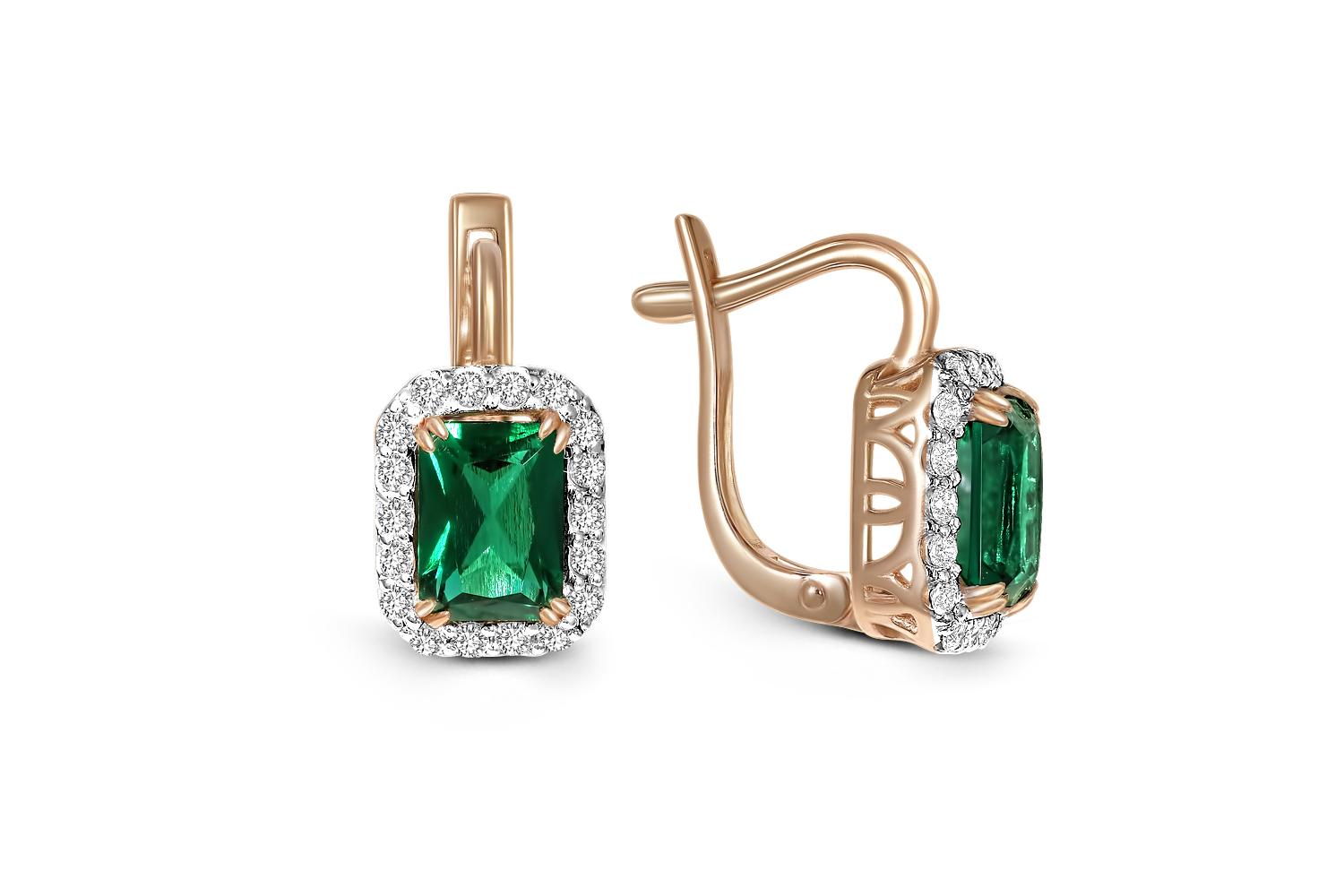 Изысканные серьги из красного золота представляют собой истинное воплощение ювелирного искусства. Центральными элементами украшения служат два изумительных изумруда - огранённые прямоугольники, которые притягивают взгляд своей насыщенной зеленью.