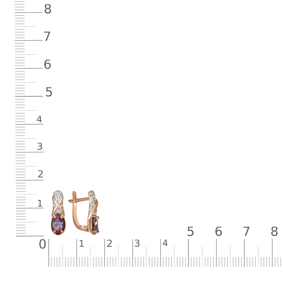 Восхитительные серьги из красного золота представляют собой истинное воплощение элегантности и изысканности. Центральным акцентом изделия служат два великолепных александрита - камня, известного своей способностью менять оттенок в зависимости от освещения. Металл - красное золото 585 пробы, создающее теплый, нежный оттенок. Дополнительный шарм придают 14 фианитов - бриллиантовый блеск которых подчеркивает игру александритов.