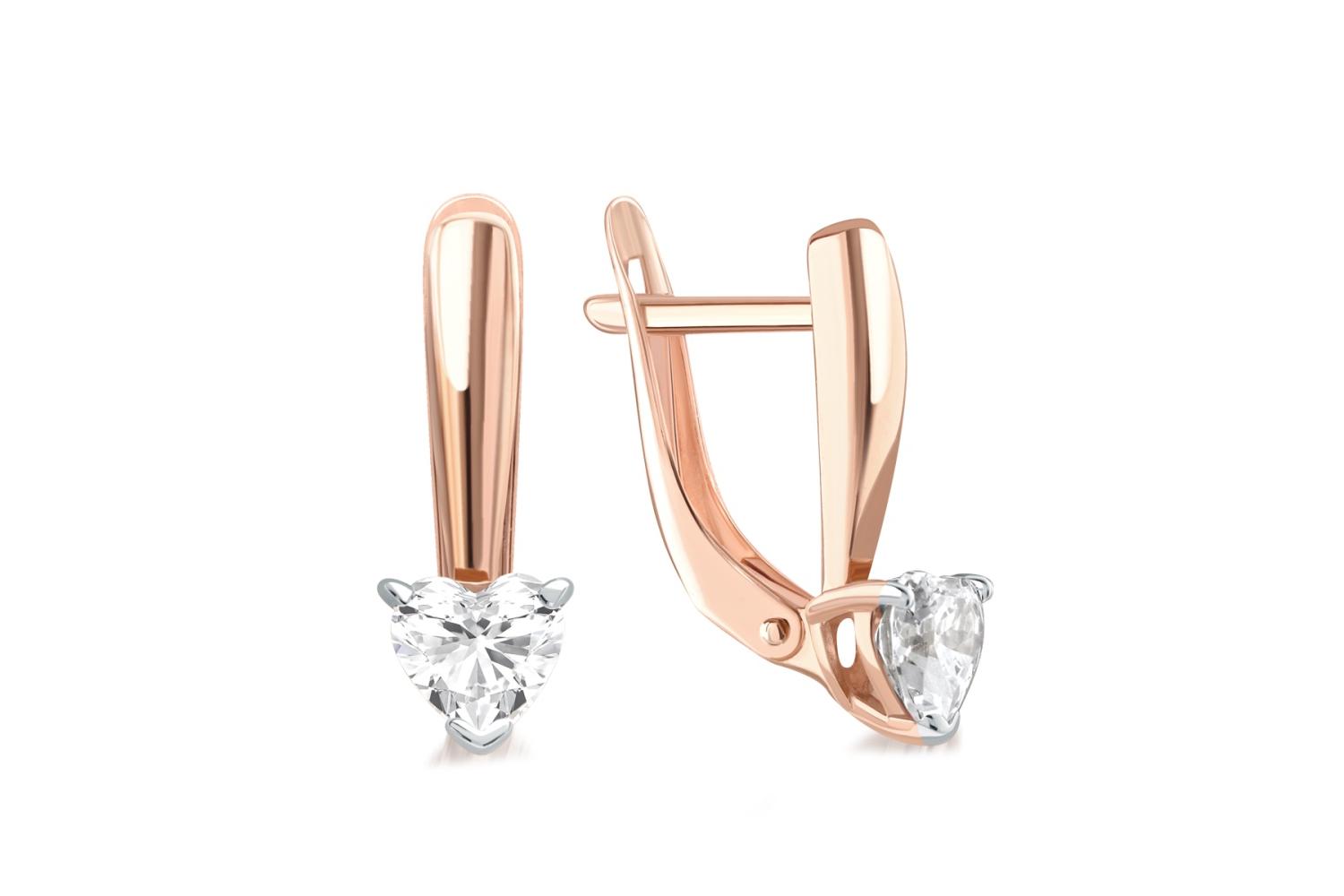 Мастера компании NEWGOLD, приложив всё свое мастерство и искусство, создали для Вас на нашем собственном производстве Серьги Сердца из красного золота с 2 фианитами.
