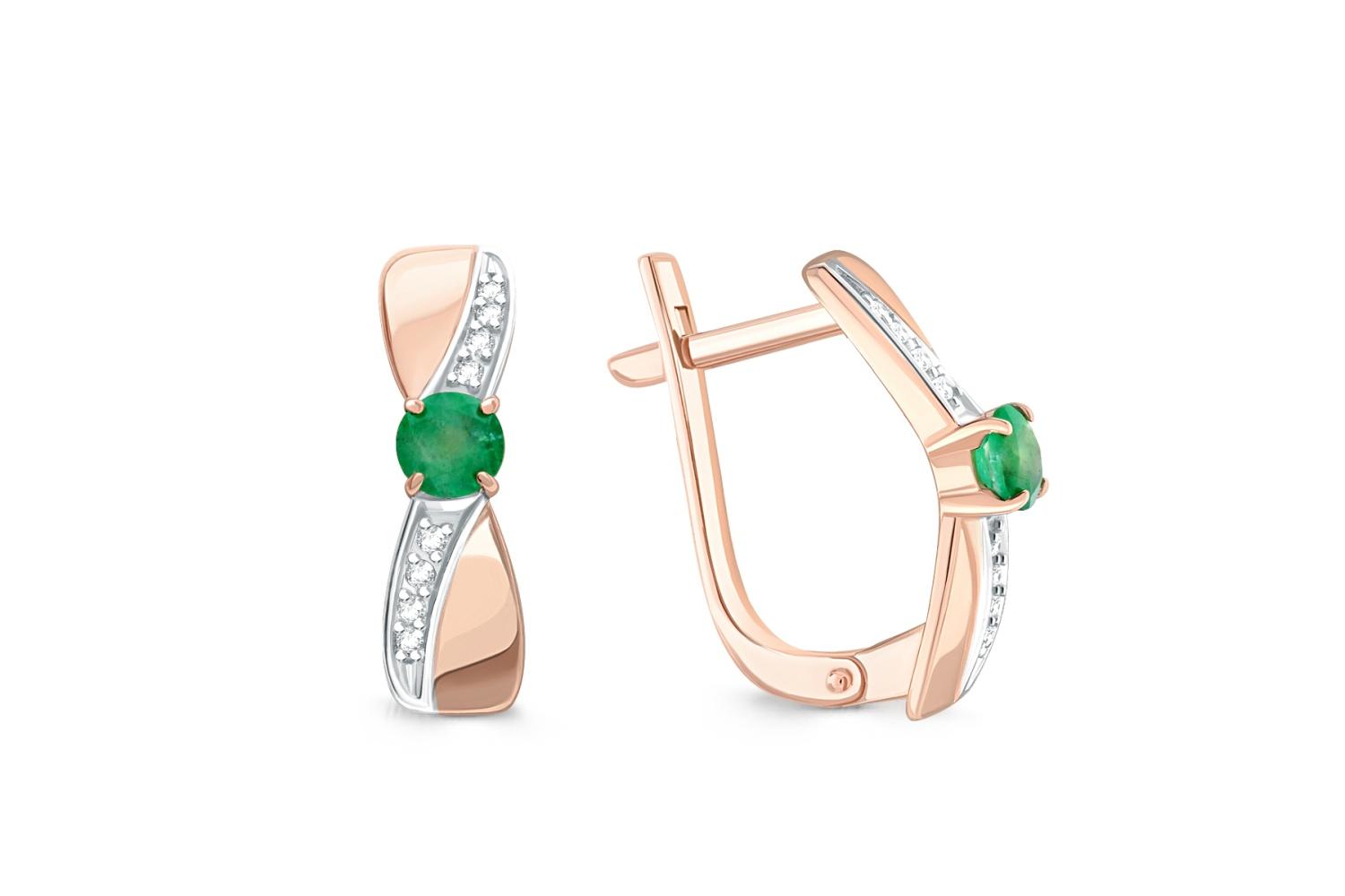 Мастера компании NEWGOLD, приложив всё свое мастерство и искусство, создали для Вас на нашем собственном производстве Серьги из красного золота с 2 изумрудами и 16 бриллиантами.