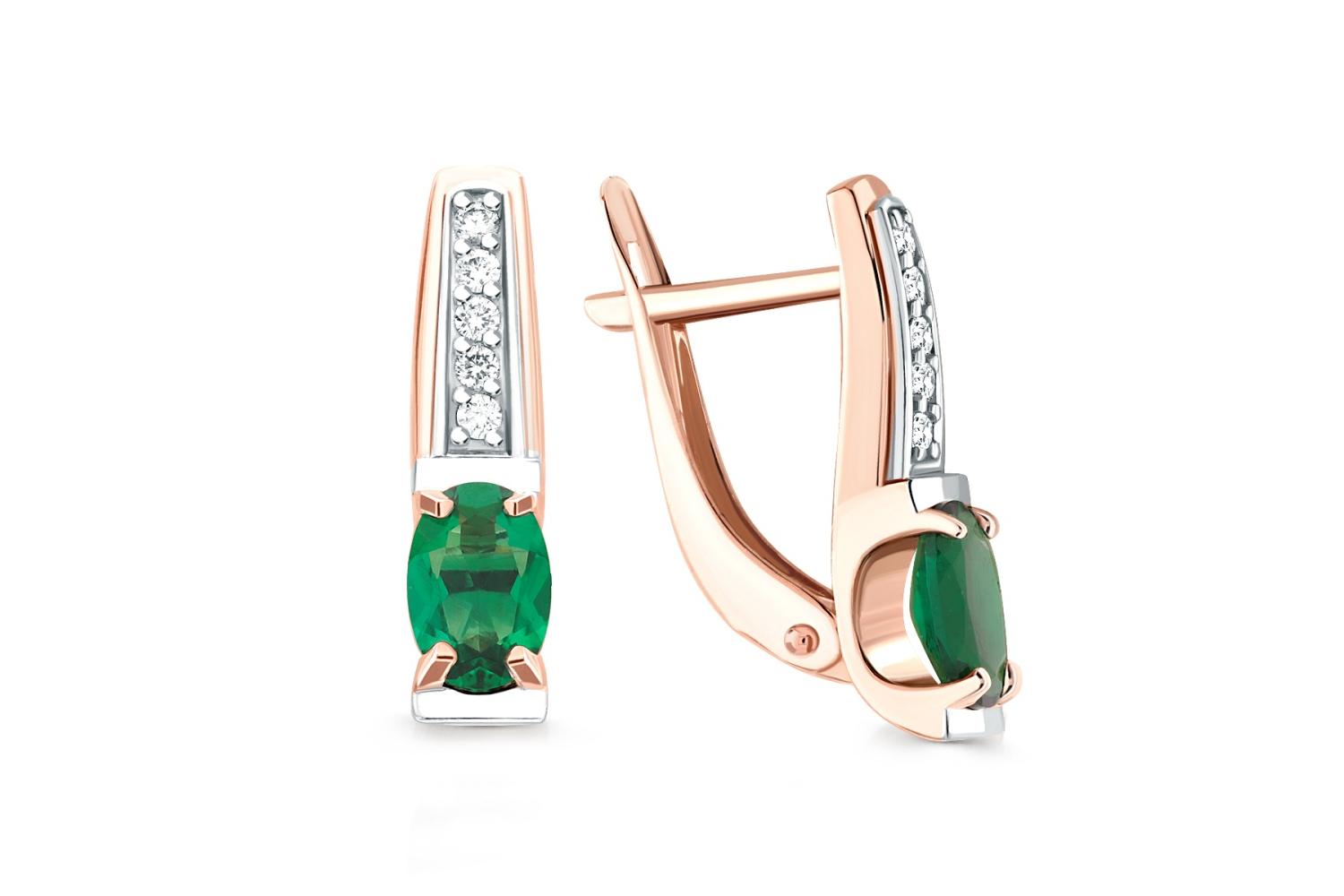Мастера компании NEWGOLD, приложив всё свое мастерство и искусство, создали для Вас на нашем собственном производстве Серьги из красного золота с 2 изумрудами и 10 бриллиантами.
