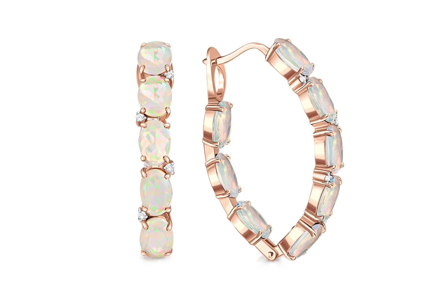 Мастера компании NEWGOLD, приложив всё свое мастерство и искусство, создали для Вас на нашем собственном производстве Серьги Дорожки из красного золота с 16 опалами и 8 фианитами.