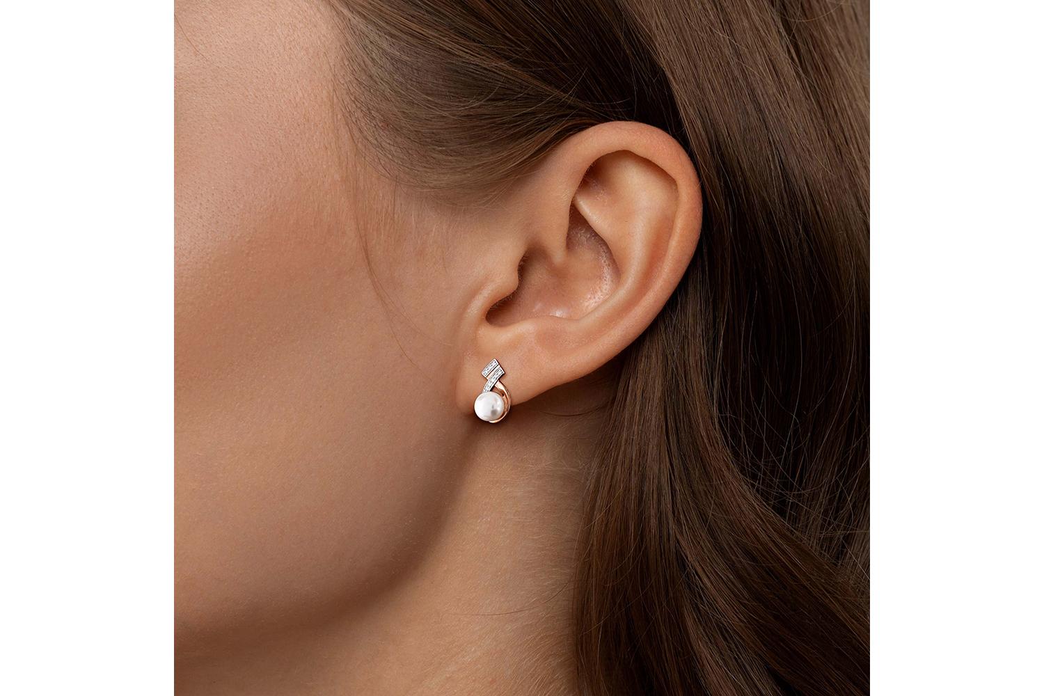 Мастера компании NEWGOLD, приложив всё свое мастерство и искусство, создали для Вас на нашем собственном производстве Серьги из красного золота с 2 жемчужинами и 20 бриллиантами.