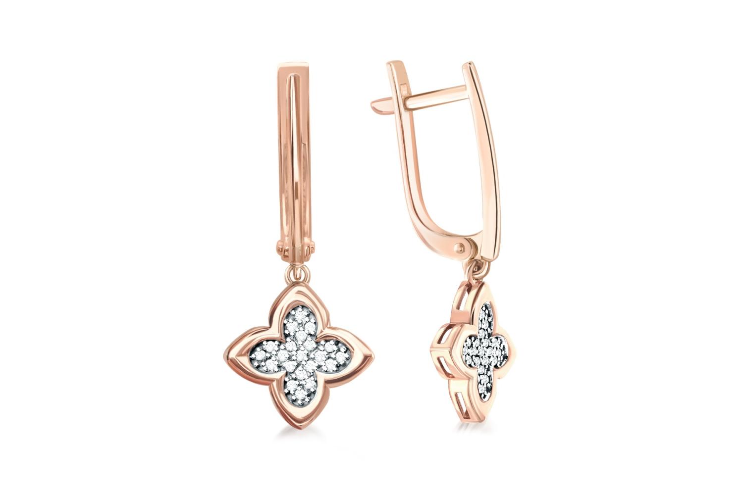 Мастера компании NEWGOLD, приложив всё свое мастерство и искусство, создали для Вас на нашем собственном производстве Серьги Клевер из красного золота с 42 выращенными бриллиантами.