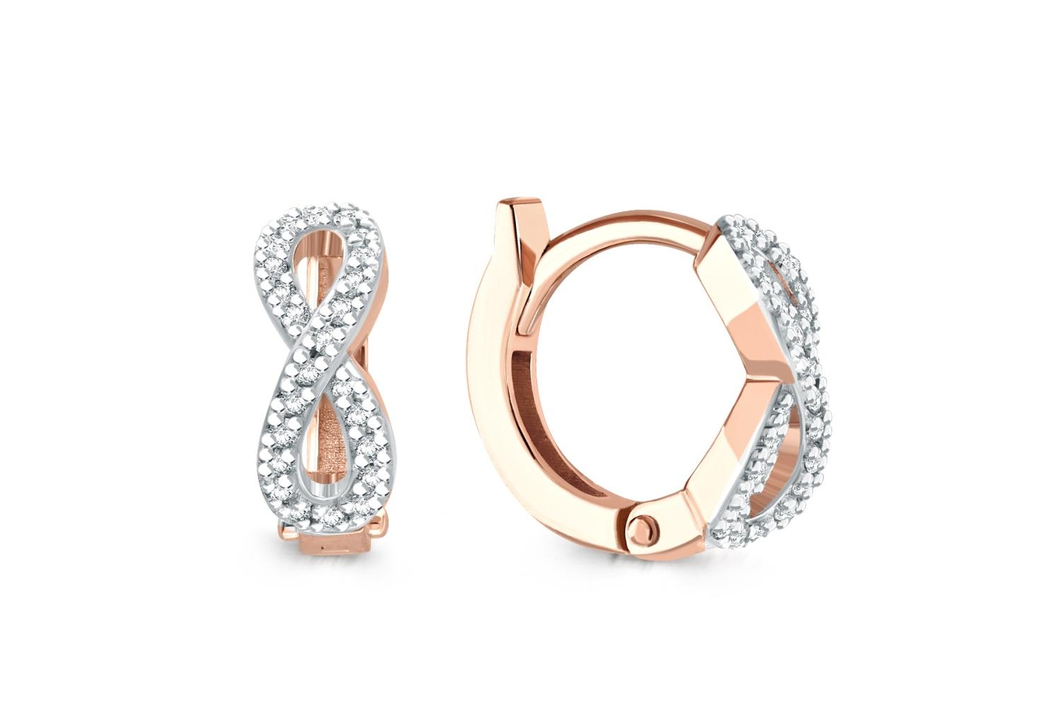 Мастера компании NEWGOLD, приложив всё свое мастерство и искусство, создали для Вас на нашем собственном производстве Серьги Бесконечность из красного золота с 48 фианитами.