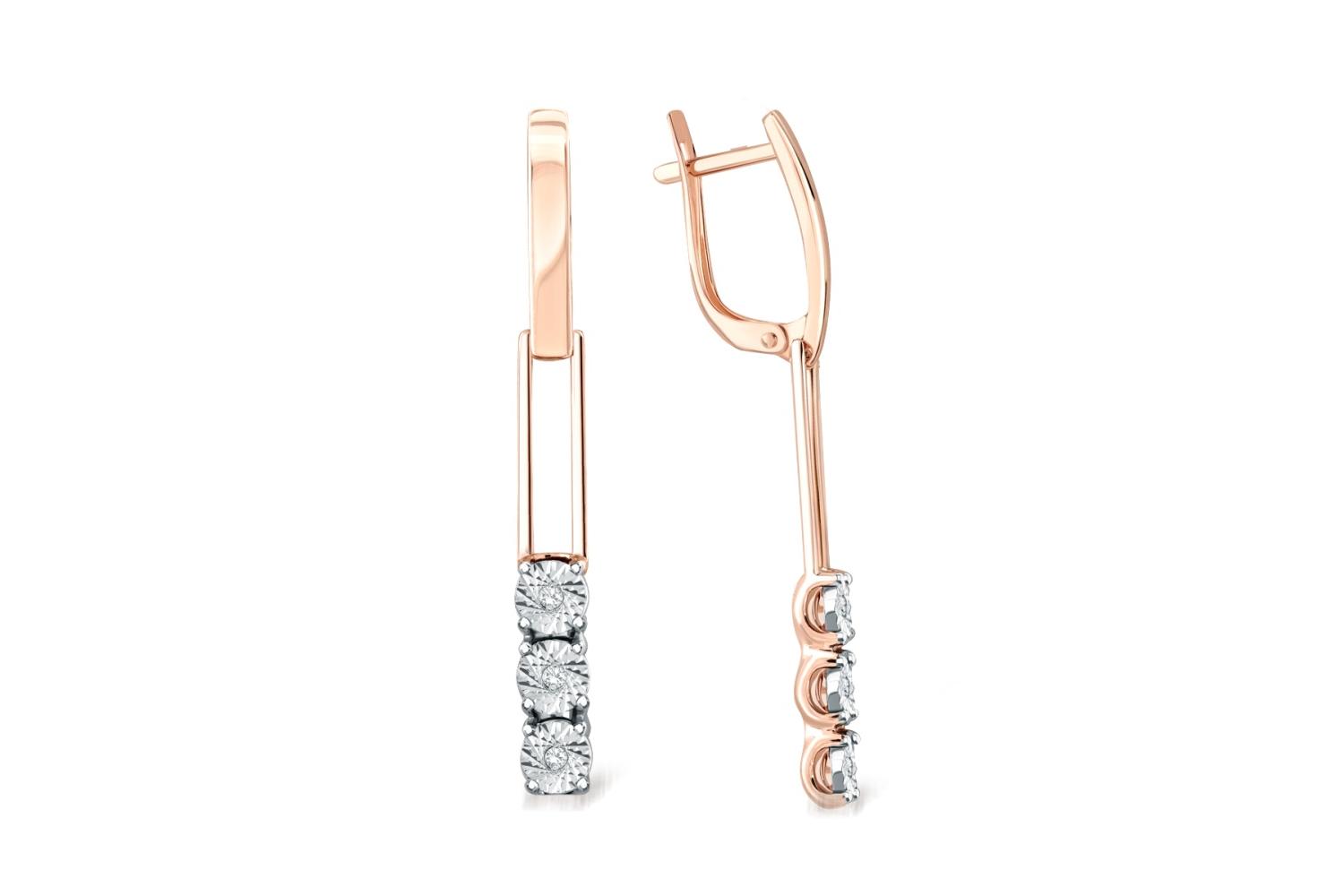 Мастера компании NEWGOLD, приложив всё свое мастерство и искусство, создали для Вас на нашем собственном производстве Серьги из красного золота с 6 бриллиантами.