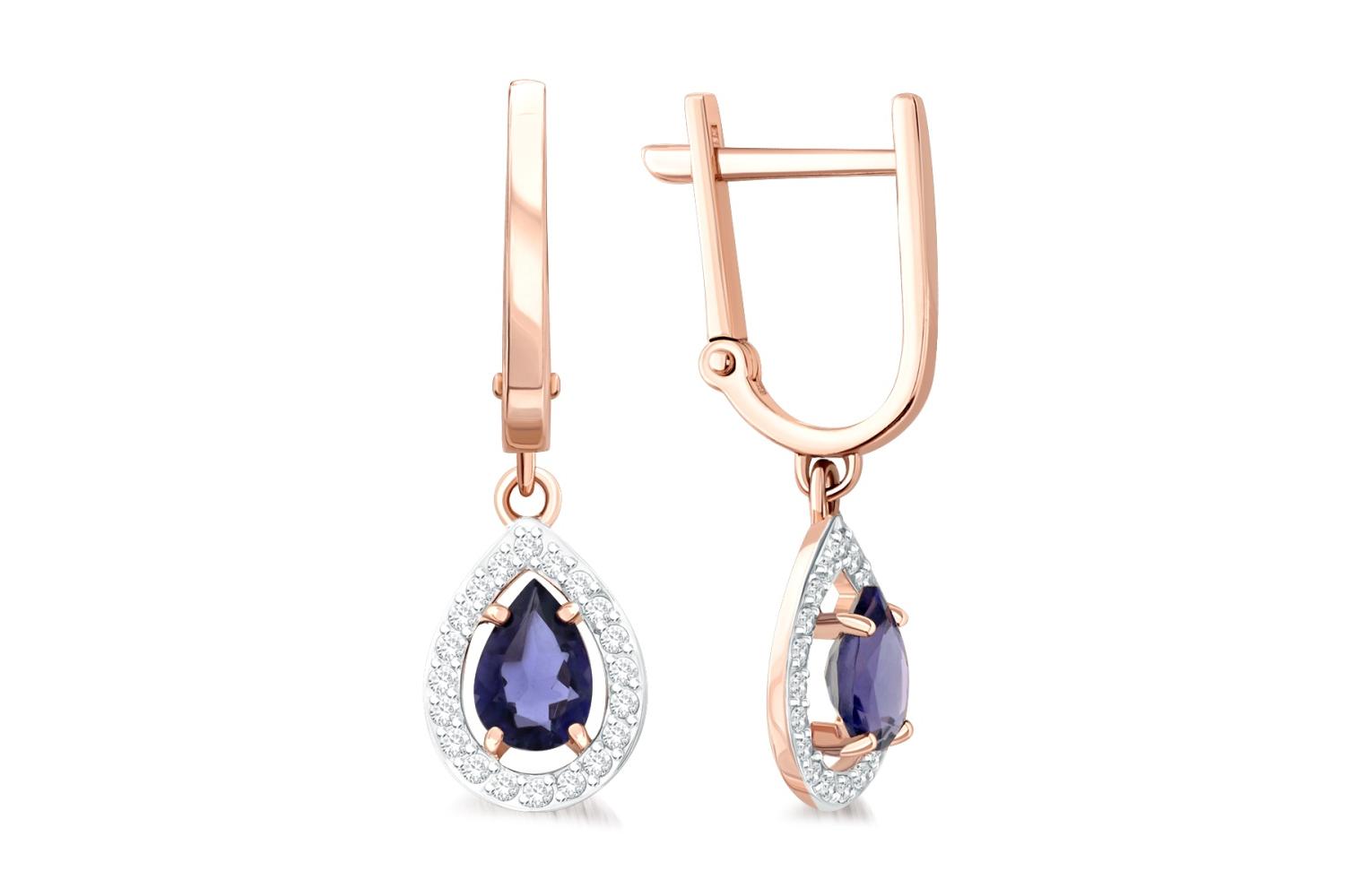 Мастера компании NEWGOLD, приложив всё свое мастерство и искусство, создали для Вас на нашем собственном производстве Серьги из красного золота с 2 иолитами и 40 фианитами.