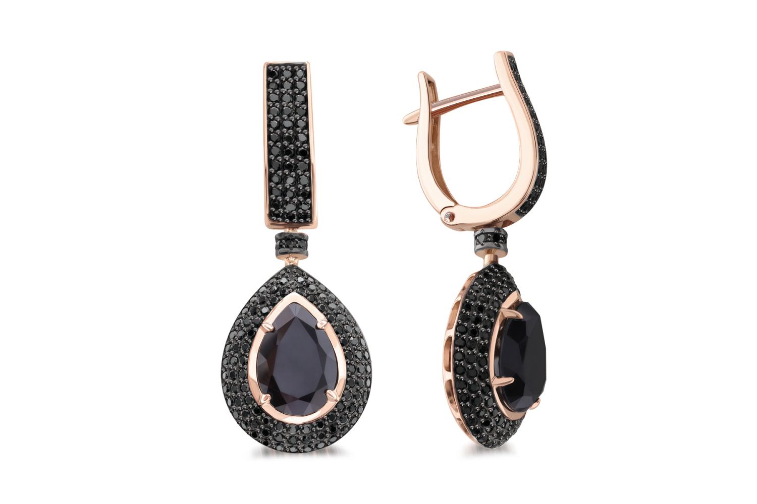 Мастера компании NEWGOLD, приложив всё свое мастерство и искусство, создали для Вас на нашем собственном производстве Серьги из красного золота с 2 агатами и 278 фианитами.