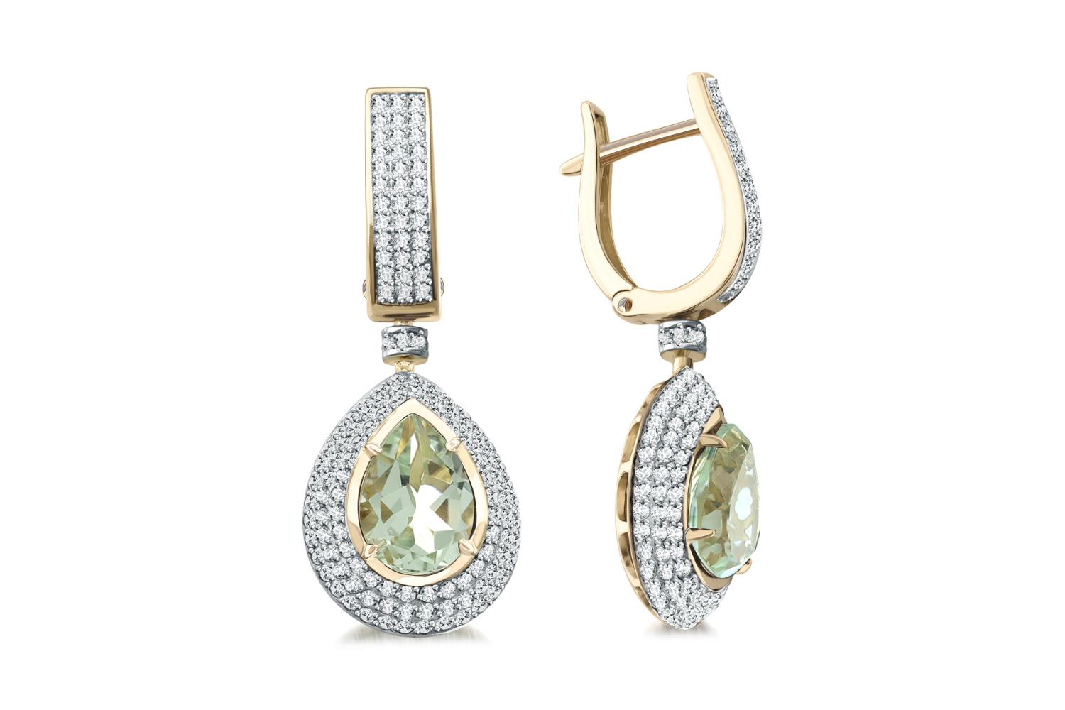 Аметист зеленый натуральный, количество 2 шт., огранка груша, размер 10ˣ7 ; Фианит б/цв, количество 278 шт., огранка круг, размер 1 мм