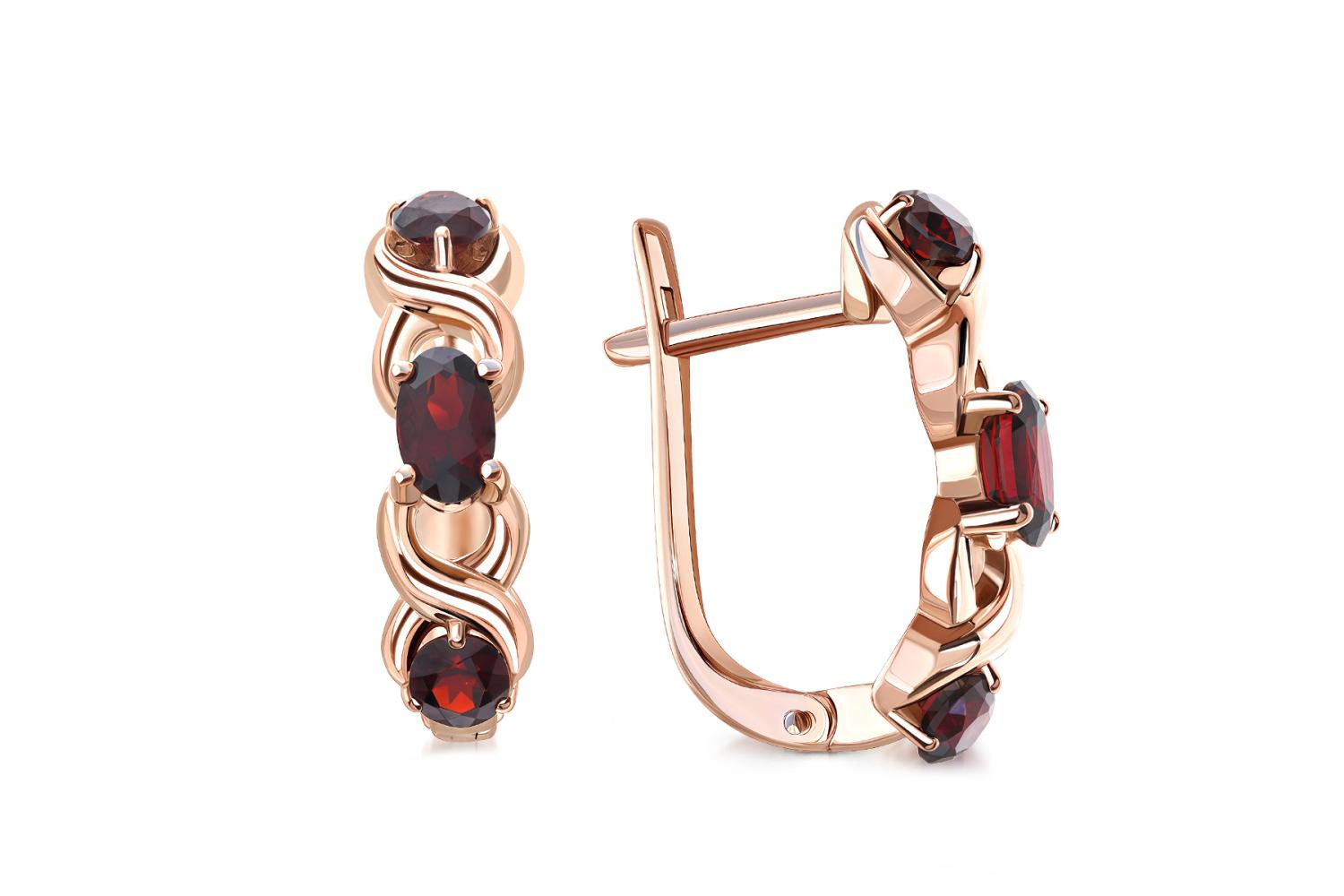 Мастера компании NEWGOLD, приложив всё свое мастерство и искусство, создали для Вас на нашем собственном производстве Серьги из красного золота с 6 гранатами.