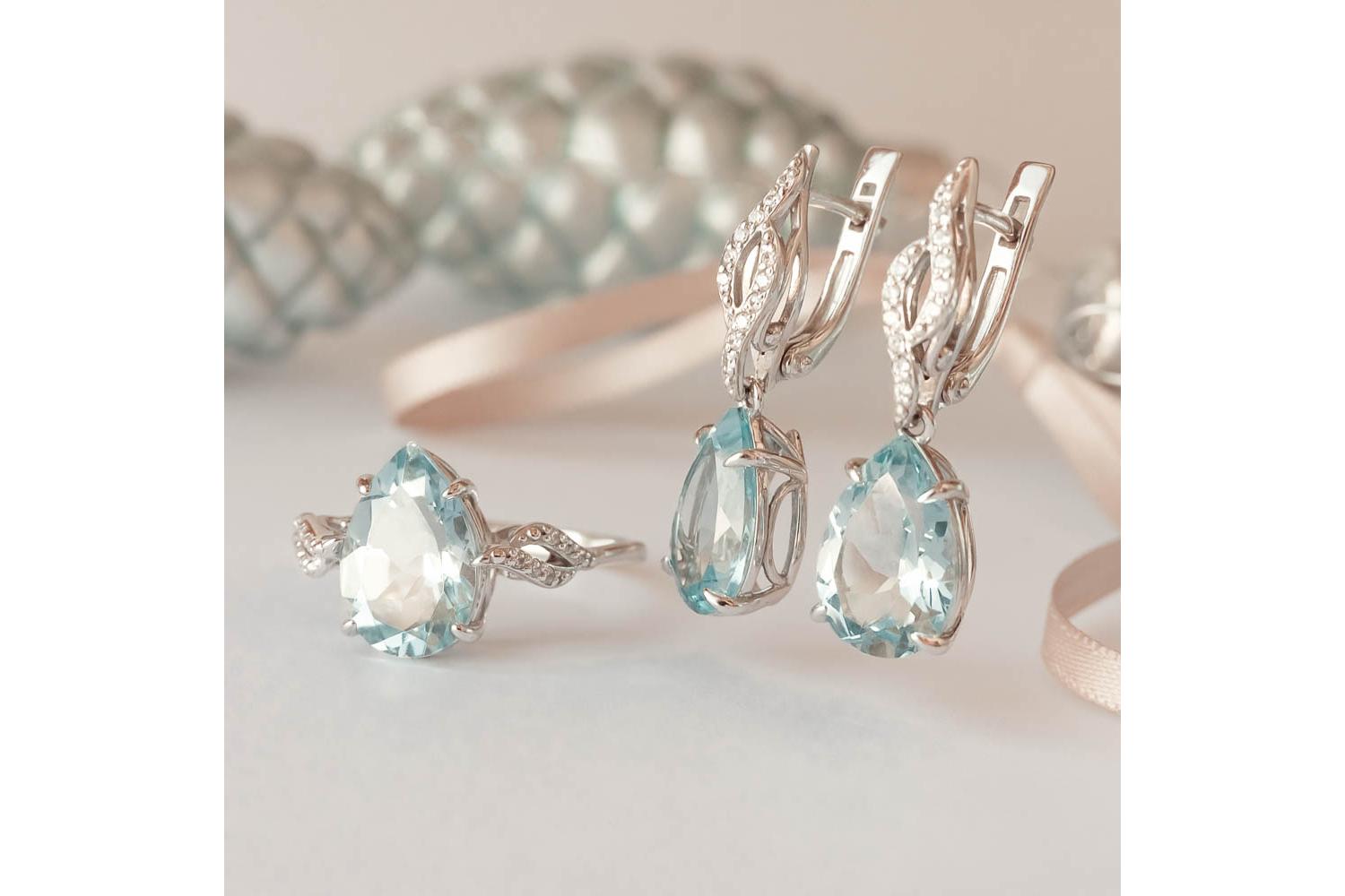 Топаз Sky натуральный, количество 2 шт., огранка груша, размер 12ˣ8 ; Топаз бесцветный натуральный, количество 24 шт., огранка круг, размер 1 мм