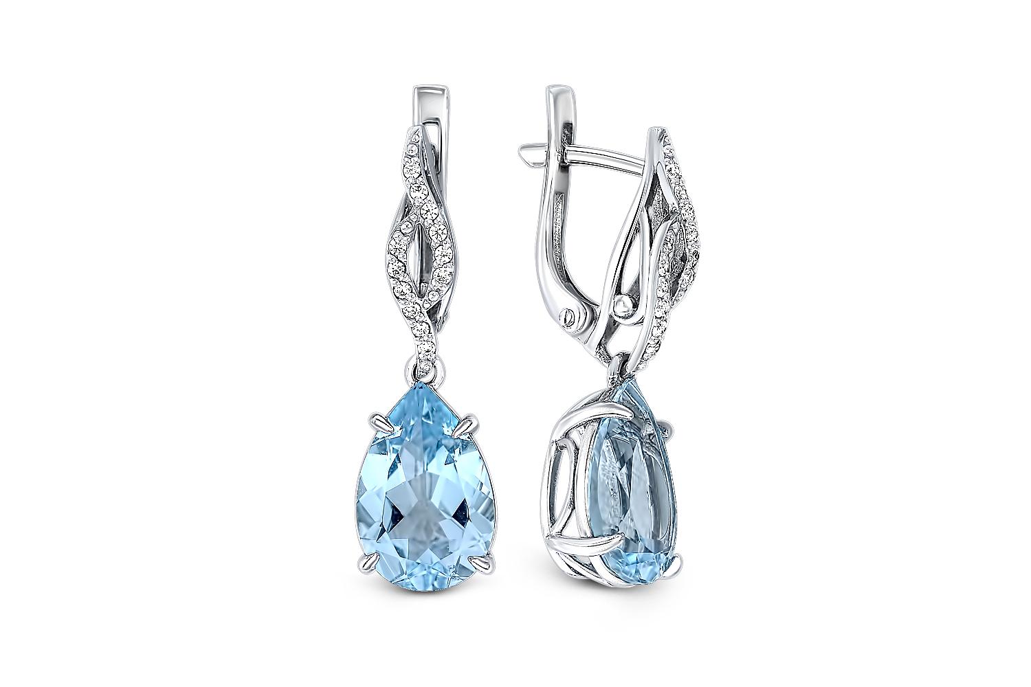 Мастера компании NEWGOLD, приложив всё свое мастерство и искусство, создали для Вас на нашем собственном производстве Серьги из белого золота с 2 топазами sky и 24 топазами бесцветными.