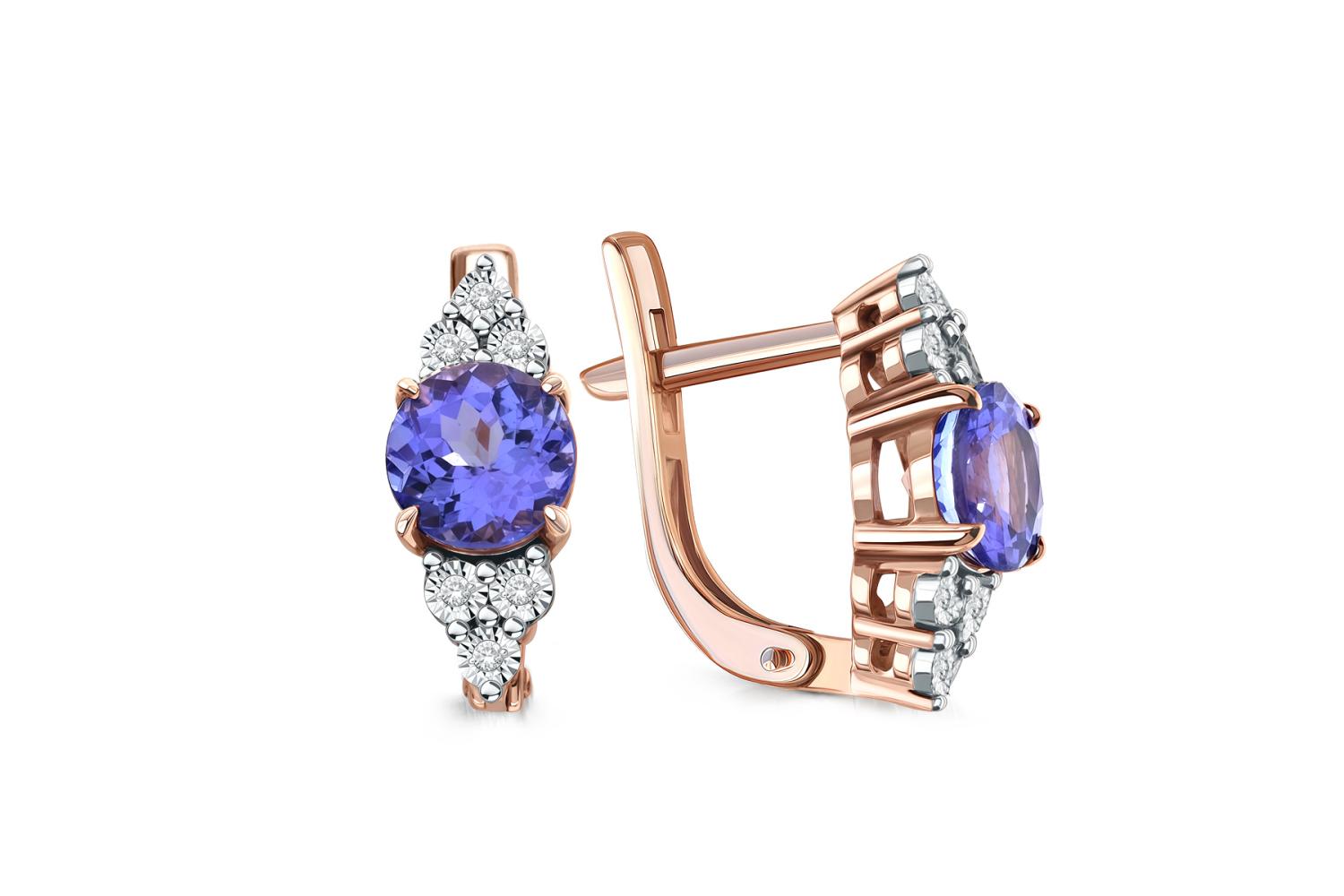 Мастера компании NEWGOLD, приложив всё свое мастерство и искусство, создали для Вас на нашем собственном производстве Серьги из красного золота с 2 танзанитами и 12 бриллиантами.