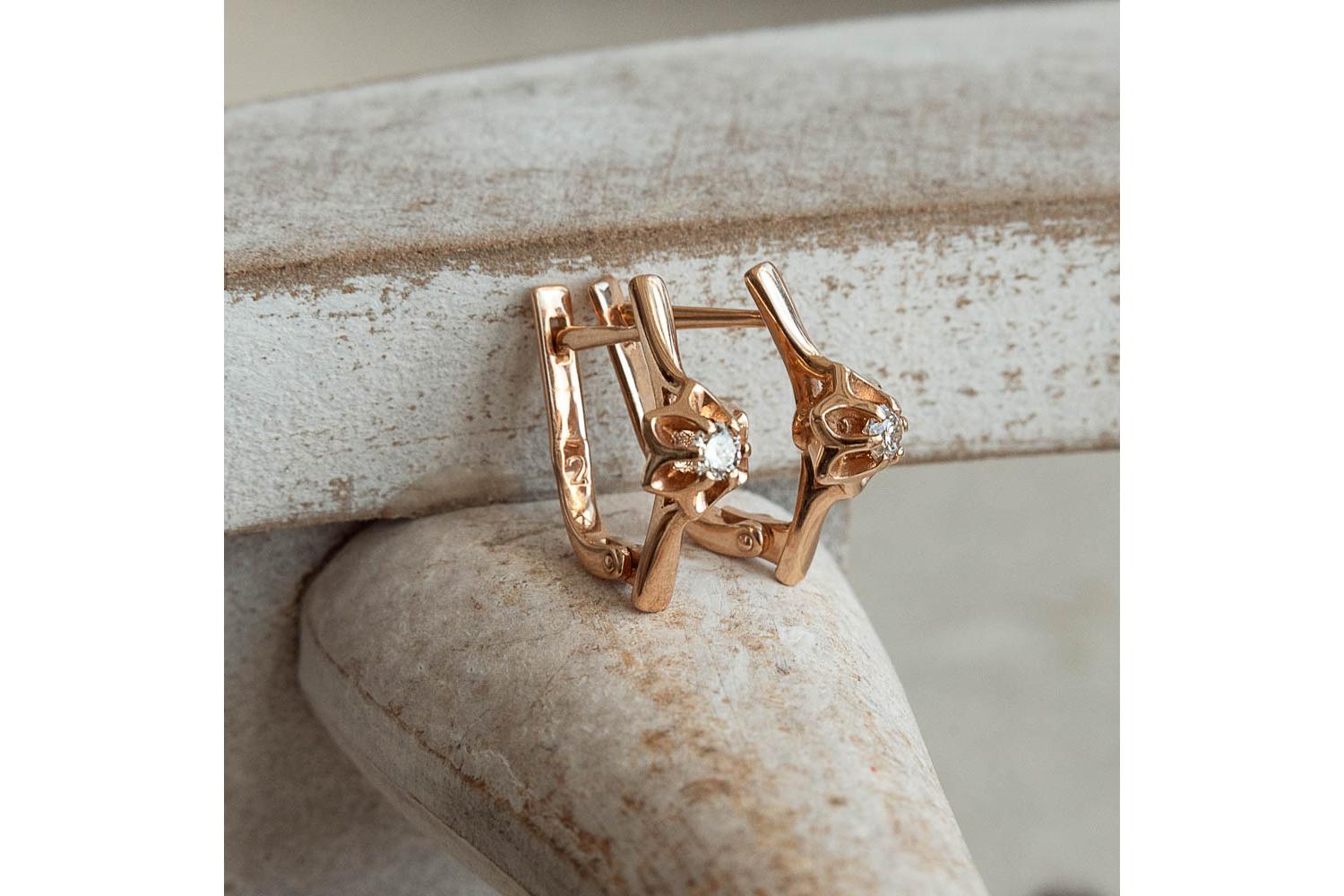 Мастера компании NEWGOLD, приложив всё свое мастерство и искусство, создали для Вас на нашем собственном производстве Серьги Цветы из красного золота с 2 бриллиантами.