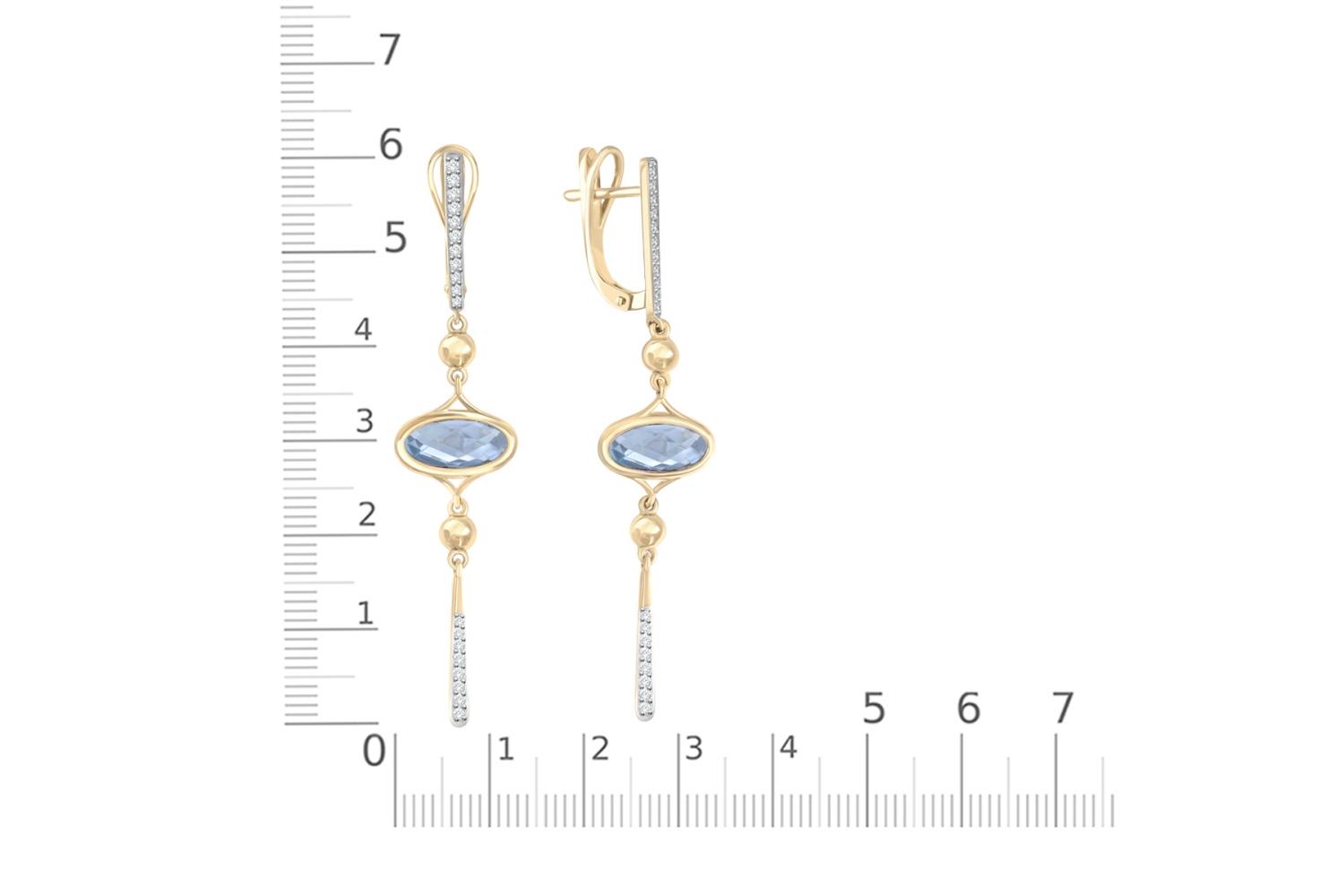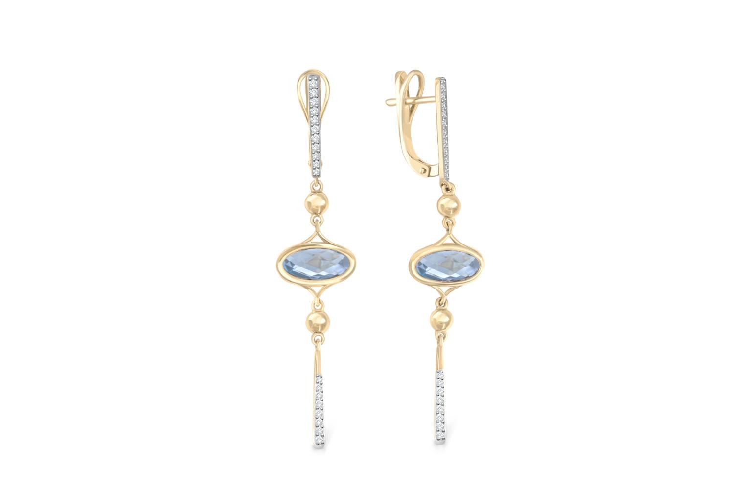Мастера компании NEWGOLD, приложив всё свое мастерство и искусство, создали для Вас на нашем собственном производстве Серьги из жёлтого золота с 2 топазами sky и 38 фианитами.