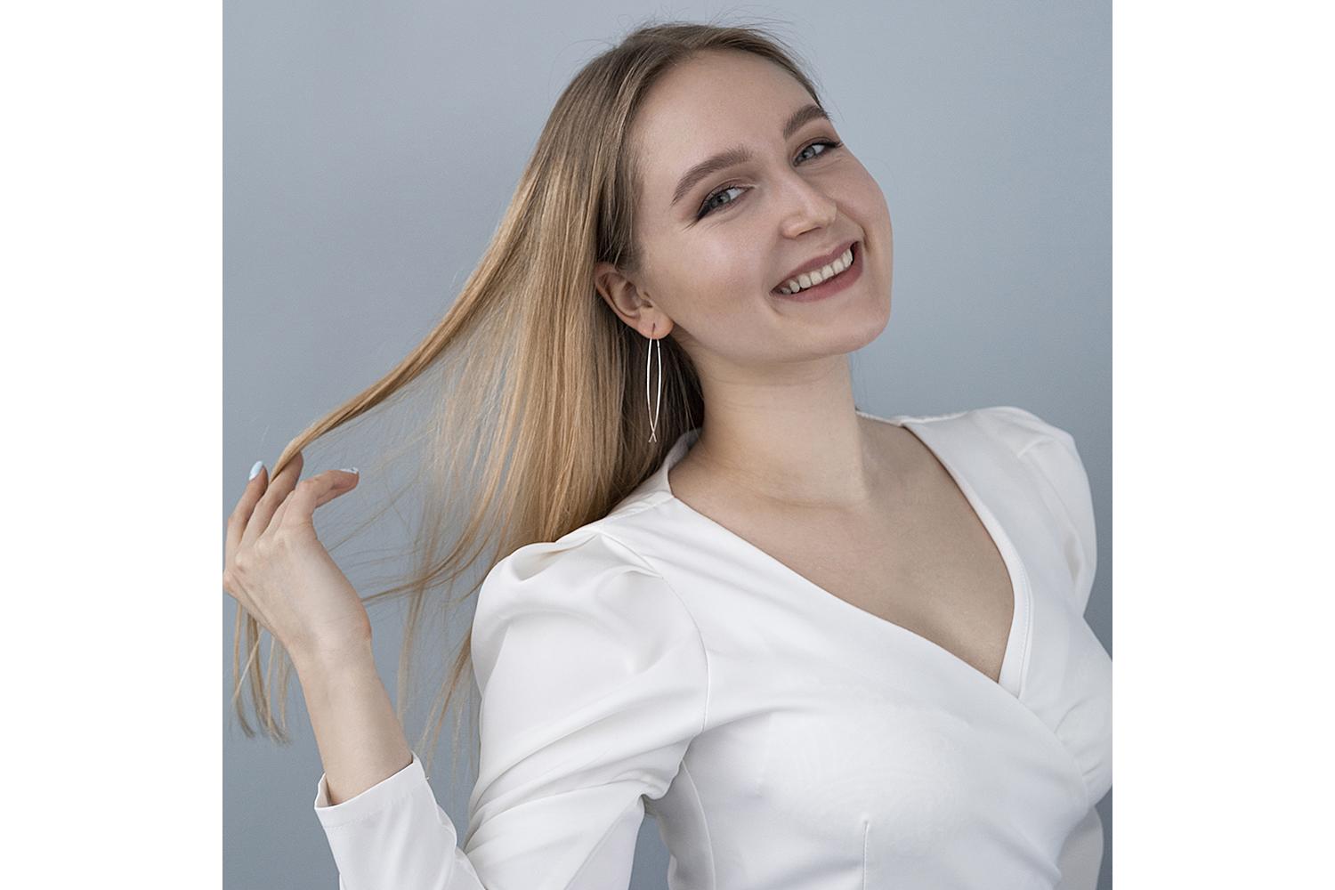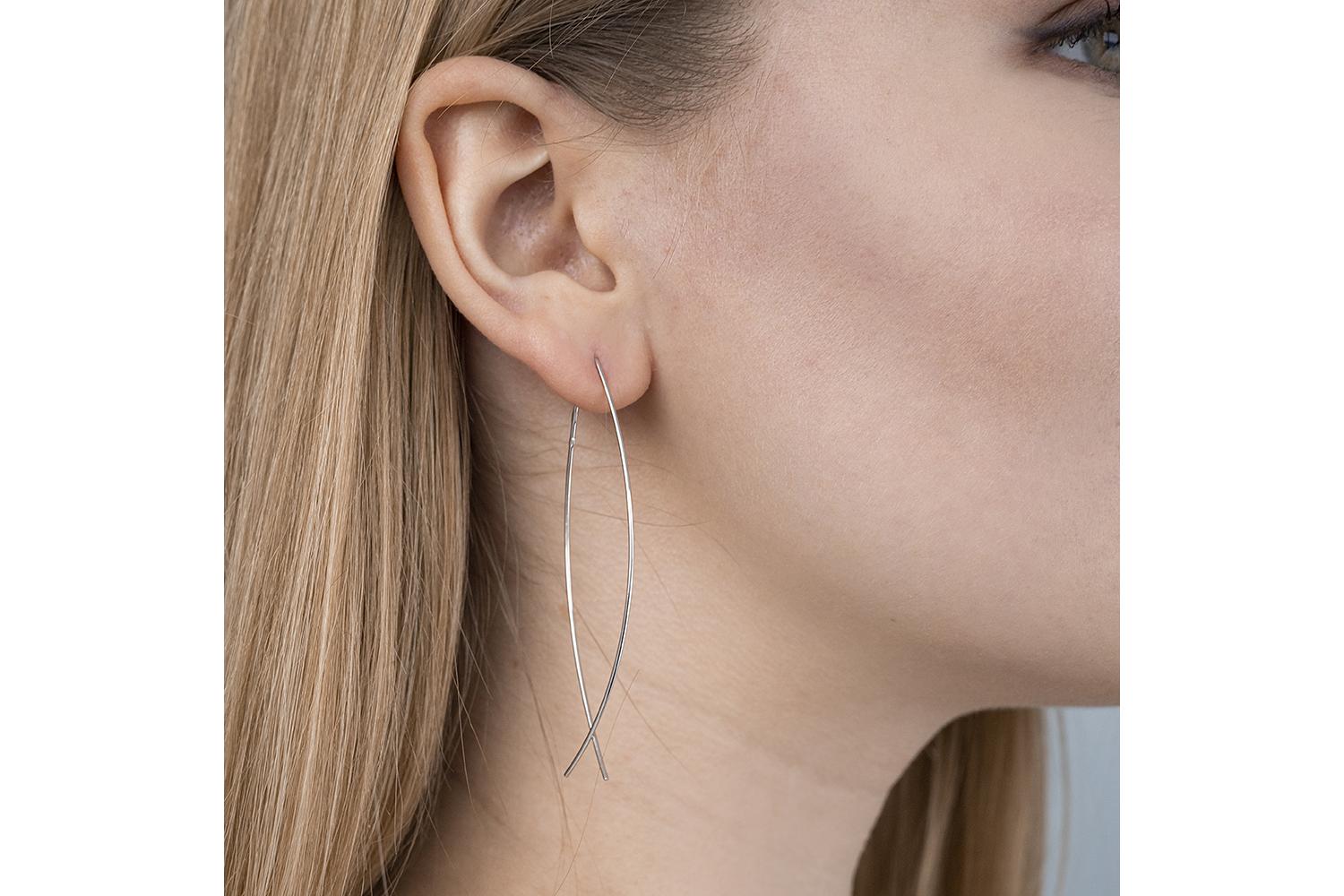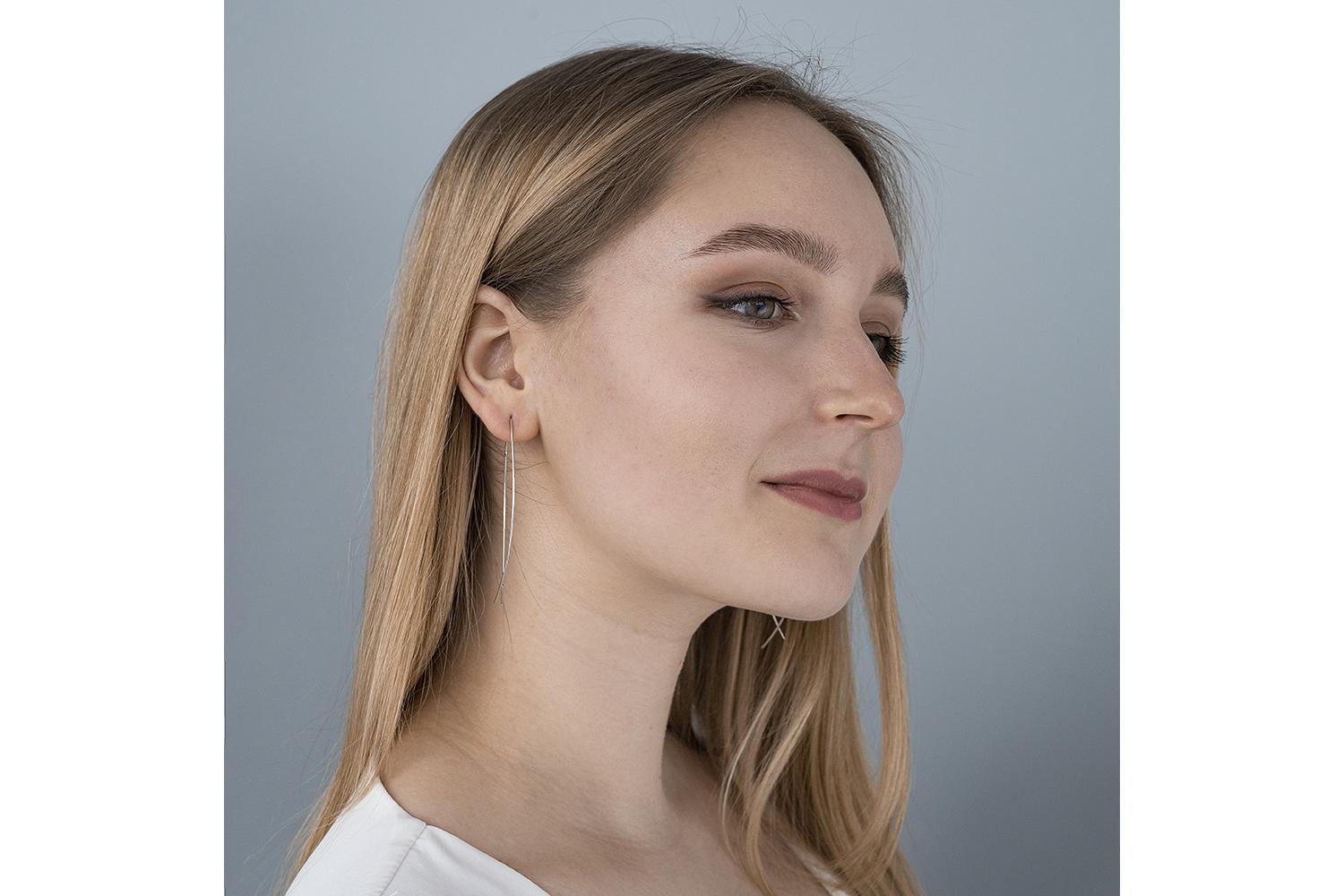 Отсутствие дополнительных украшений и вставок делает эти серьги универсальным аксессуаром, который легко впишется как в повседневный, так и в вечерний образ. Конструкция серёжек-протяжек позволяет им плавно и естественно опускаться вдоль линии уха, создавая ощущение невесомости и подчеркивая изящество женственной формы.