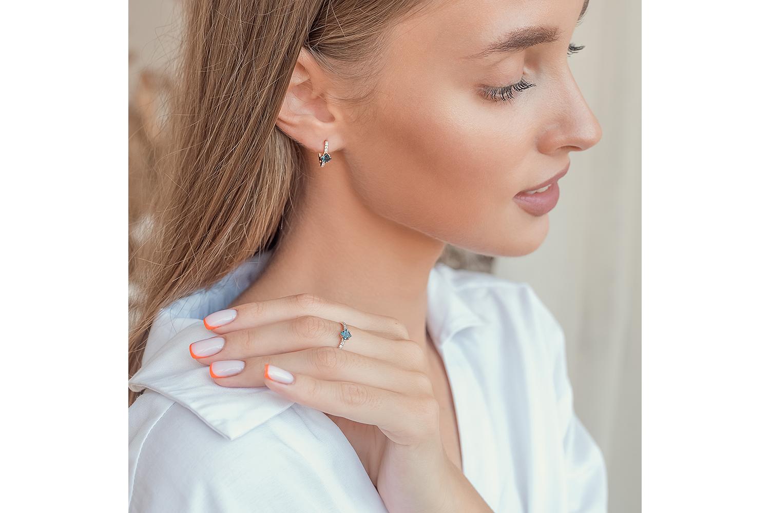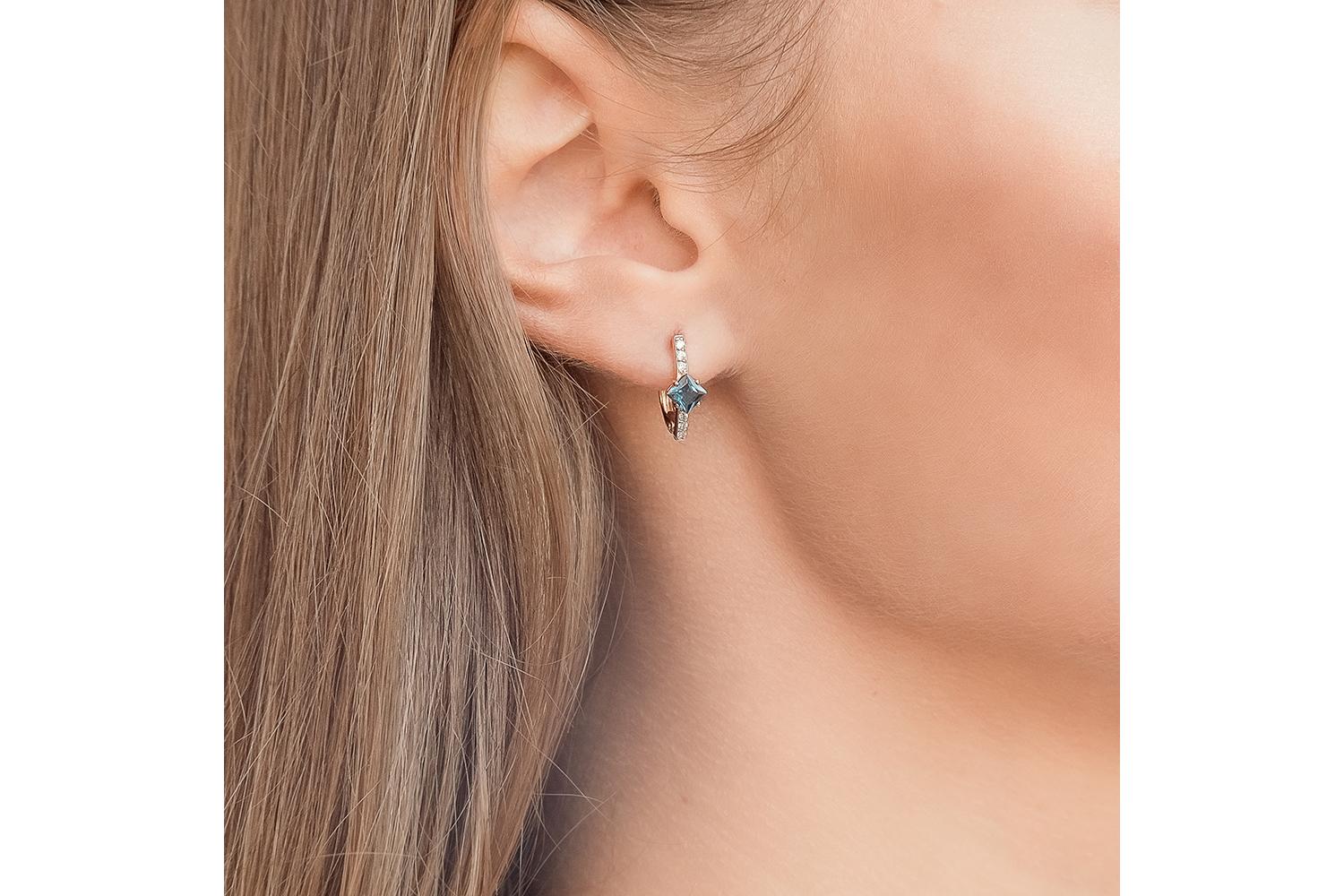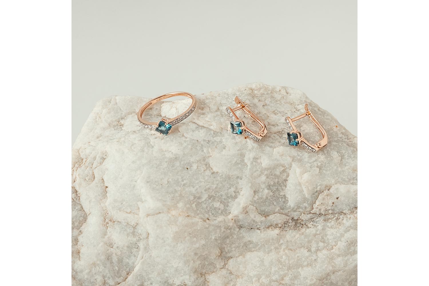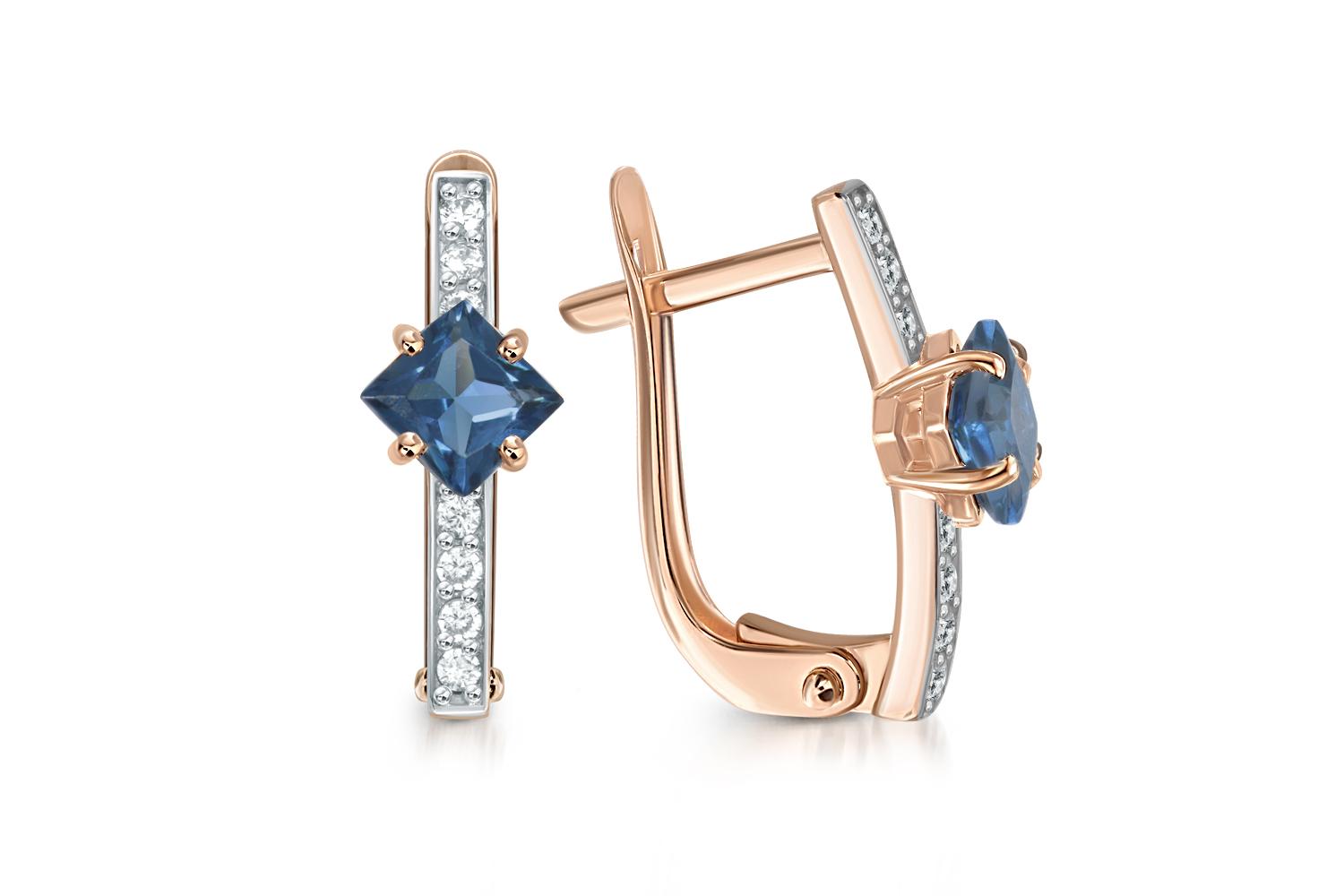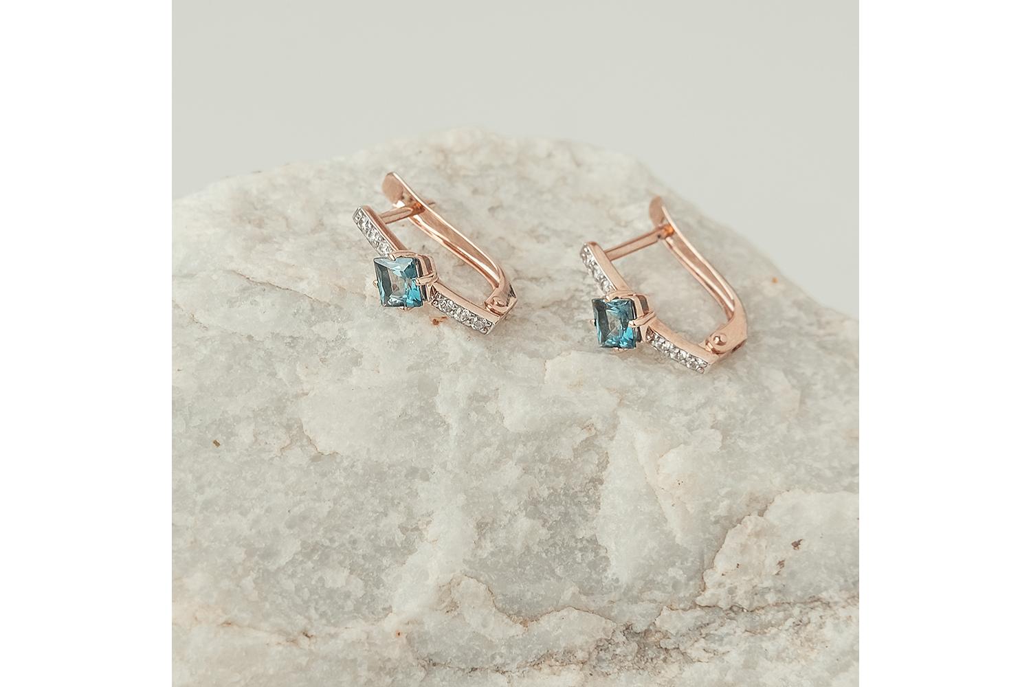 Мастера компании NEWGOLD, приложив всё свое мастерство и искусство, создали для Вас на нашем собственном производстве Серьги из красного золота с 2 топазами лондон и 12 фианитами.