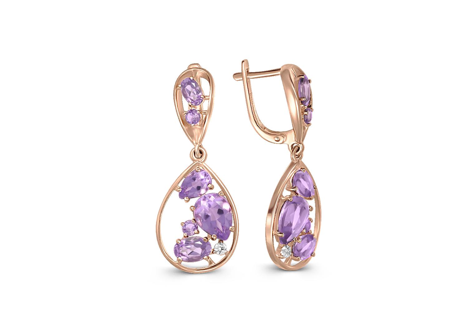 Мастера компании NEWGOLD, приложив всё свое мастерство и искусство, создали для Вас на нашем собственном производстве Серьги из красного золота с 14 аметистами.