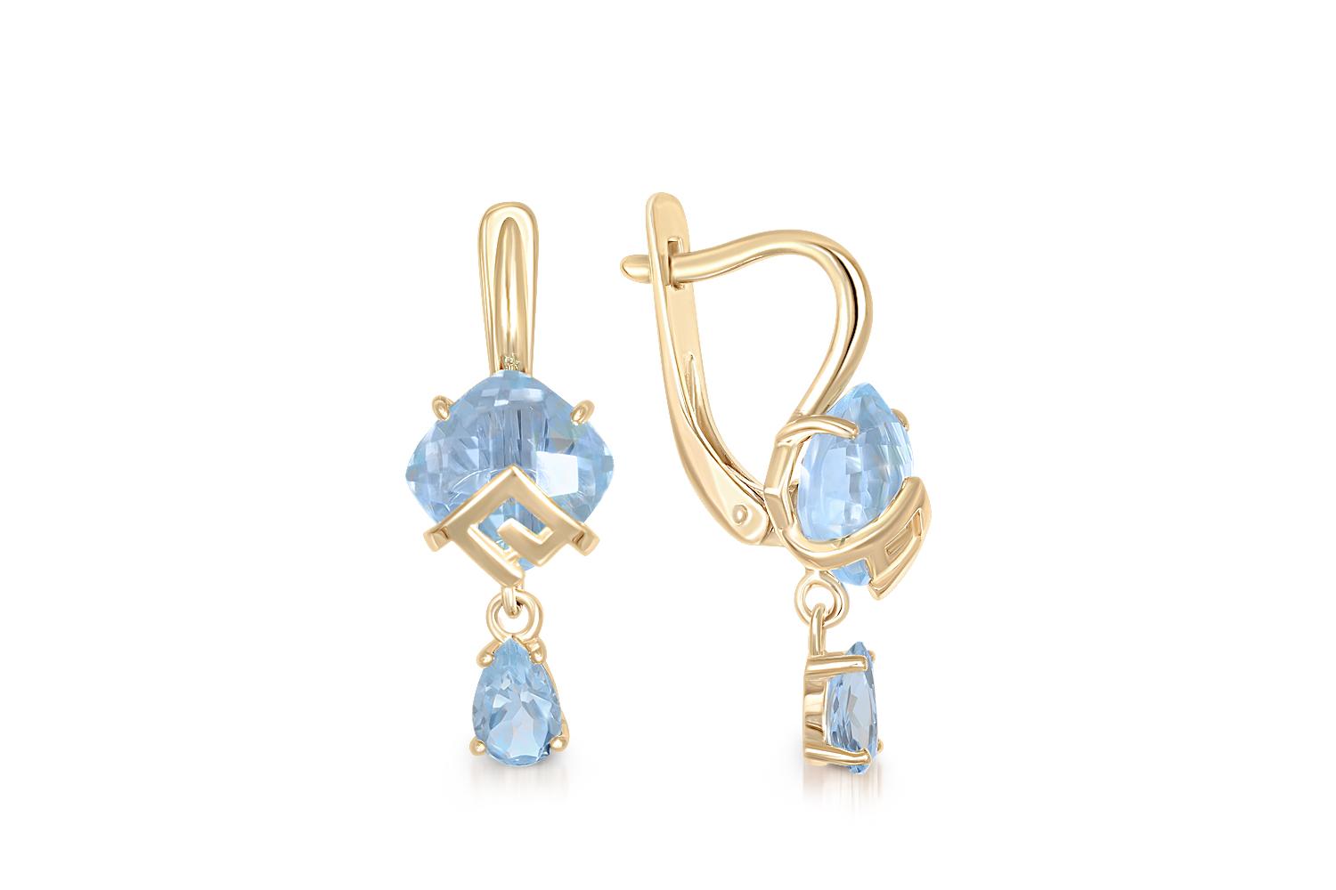 Мастера компании NEWGOLD, приложив всё свое мастерство и искусство, создали для Вас на нашем собственном производстве Серьги из жёлтого золота с 4 топазами sky.