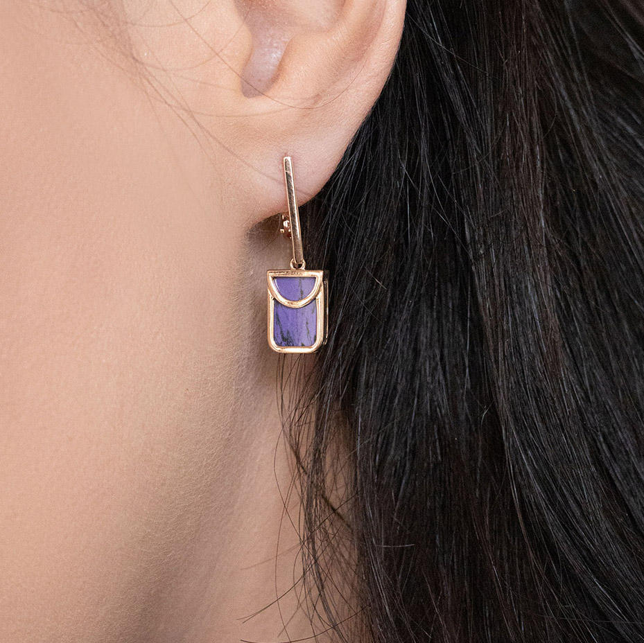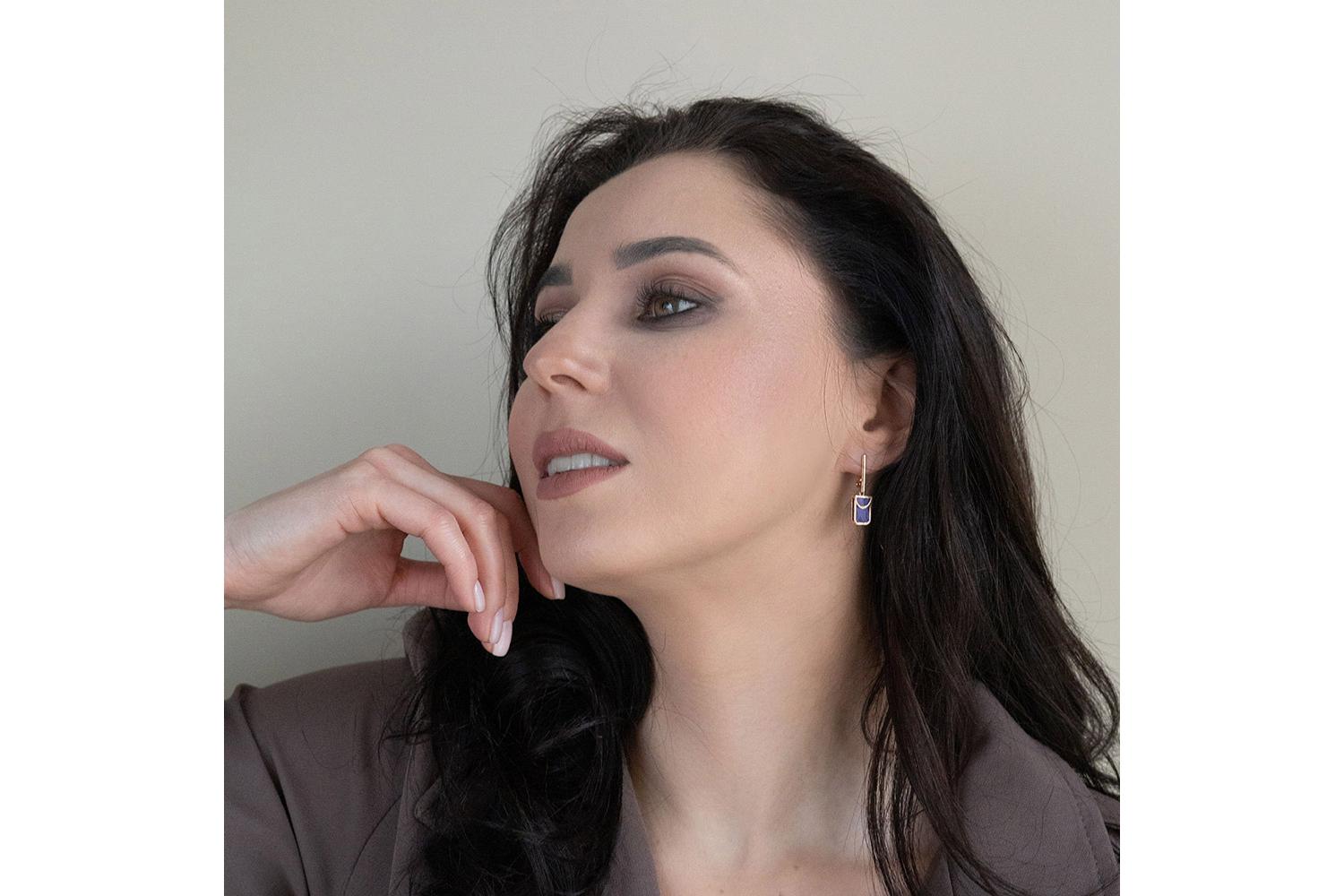 Мастера компании NEWGOLD, приложив всё свое мастерство и искусство, создали для Вас на нашем собственном производстве Серьги из красного золота с 2 чароитами.