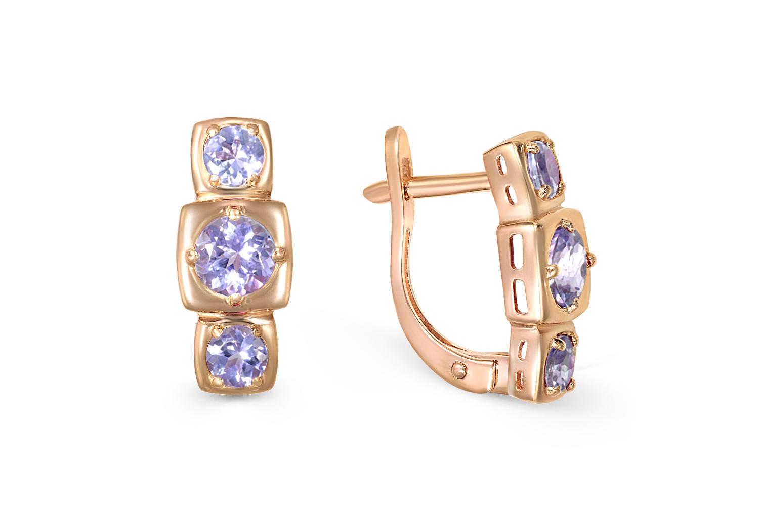 Мастера компании NEWGOLD, приложив всё свое мастерство и искусство, создали для Вас на нашем собственном производстве Серьги из красного золота с 6 танзанитами.