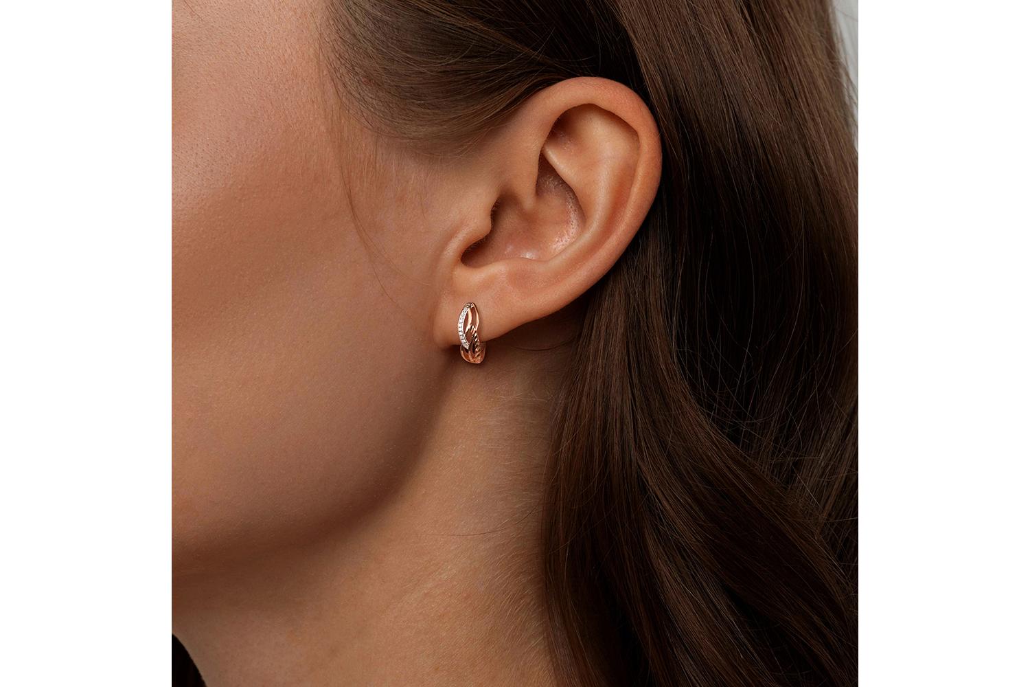 Форма сережек - подковообразная, с замком-застежкой для удобного использования. Изделие выглemenea воздушным и невесомым, что характеризует высокое ювелирное мастерство. Такие серьги - идеальный выбор для особых случаев, они подчеркнут индивидуальность и безупречный вкус владелицы.