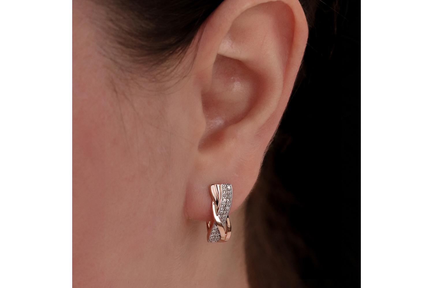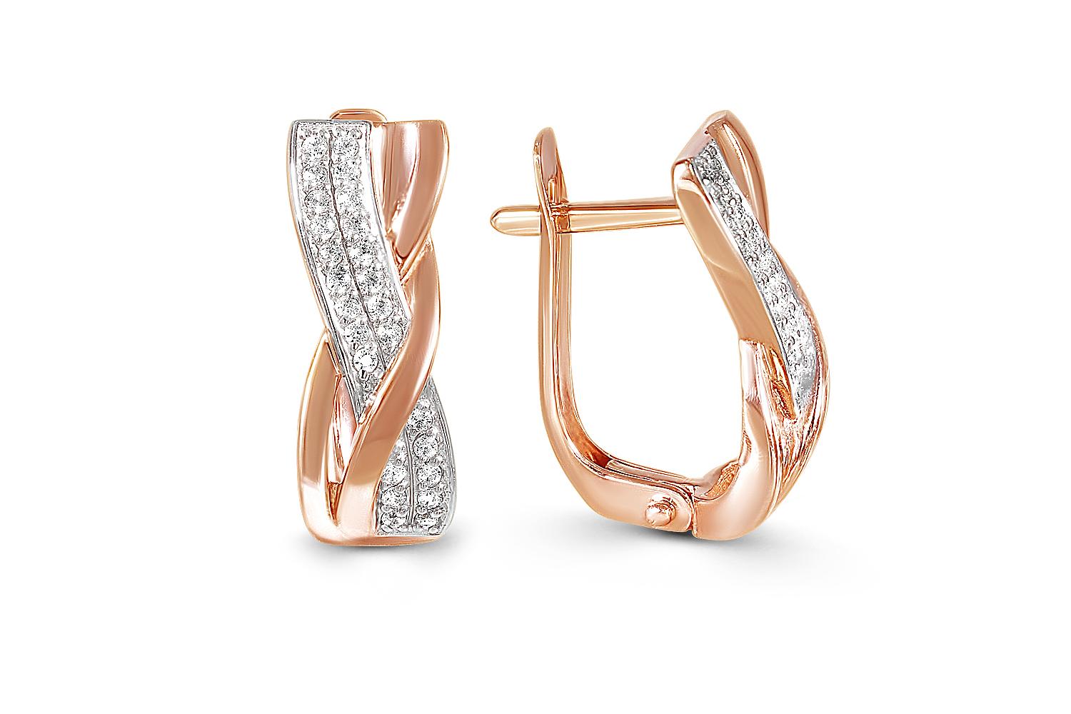 Изысканные серьги из красного золота представляют собой элегантное воплощение современного ювелирного искусства. Плавные изгибы металла создают неповторимую волнообразную форму, где розовое золото мягко переплетается с бриллиантовыми вставками.