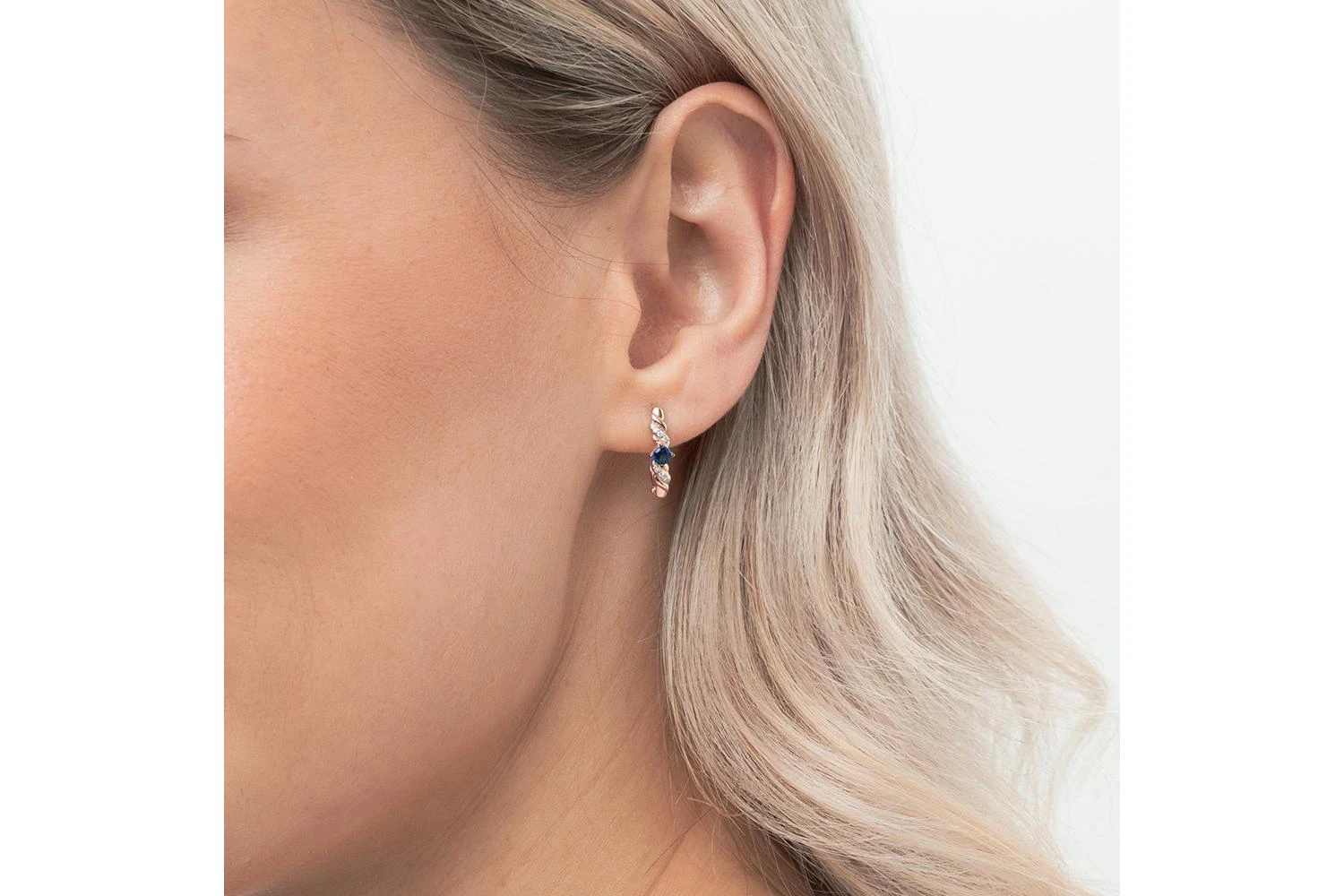 Цветовая гамма драгоценных материалов - красное золото, глубокий синий сапфир и искрящиеся белые бриллианты - формирует гармоничную композицию, которая подчеркнет изысканность и индивидуальность обладательницы.