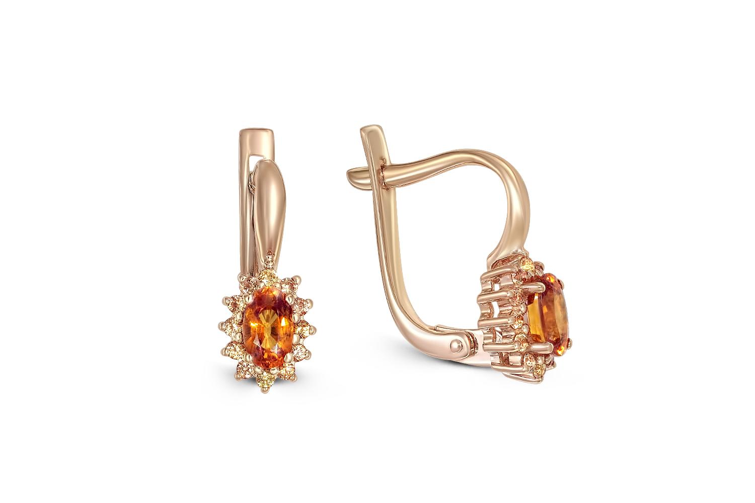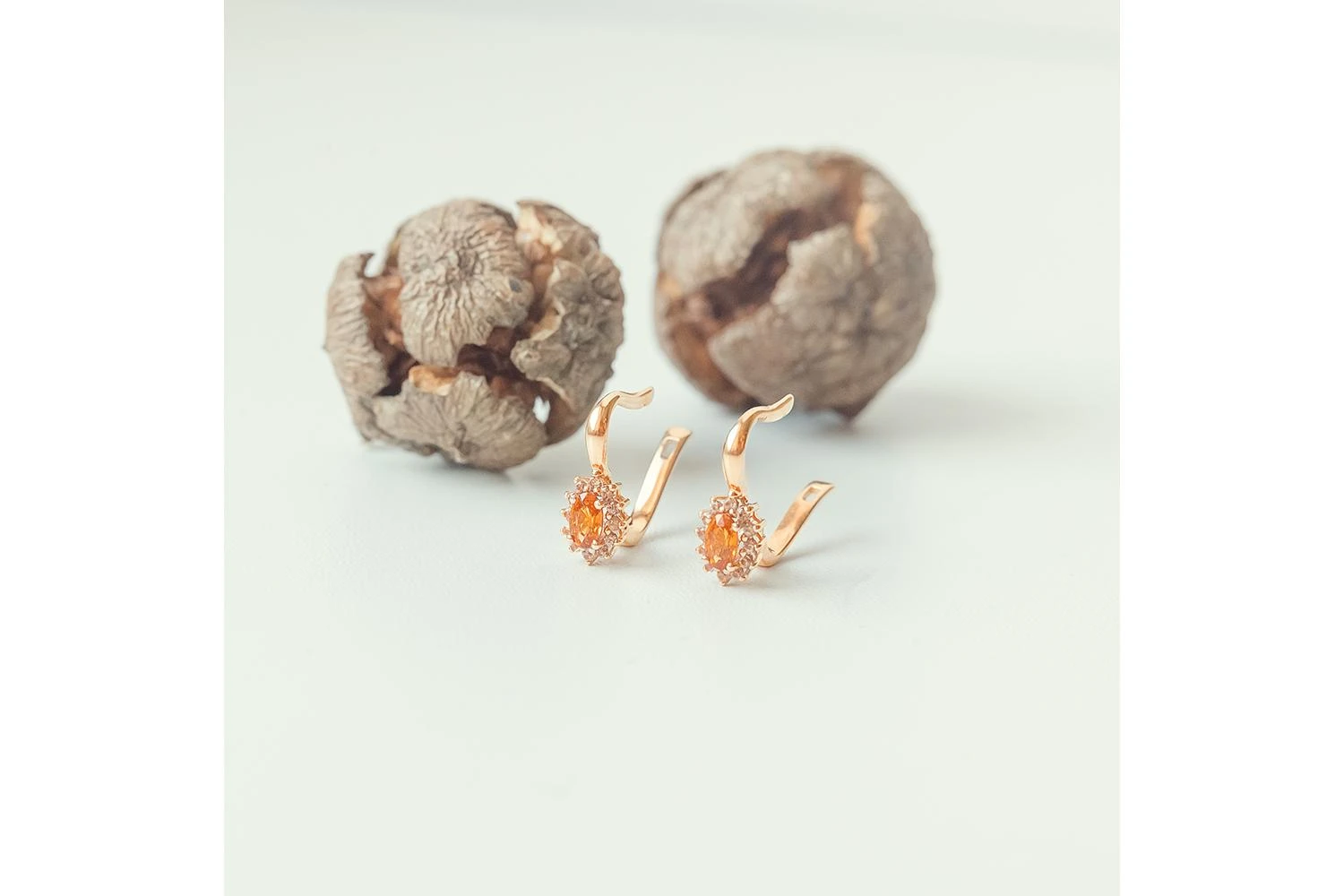Мастера компании NEWGOLD, приложив всё свое мастерство и искусство, создали для Вас на нашем собственном производстве Серьги из красного золота с 2 спессартинами и 24 сапфирами.
