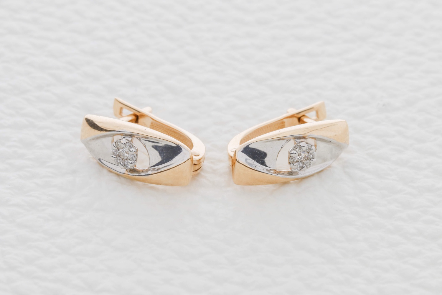 Бриллиант, количество 2 шт., огранка Кр-57, размер 1,5 мм, цвет 4, чистота 5, вес 0,025 карат. ; Бриллиант, количество 12 шт., огранка Кр-57, размер 1 мм, цвет 4, чистота 5, вес 0,033 карат.