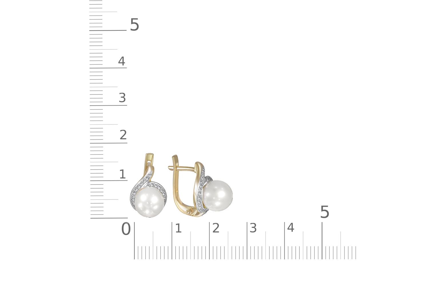 Жемчуг белый натуральный, количество 2 шт., огранка круг, размер 8ˣ8,5 ; Бриллиант, количество 54 шт., огранка Кр-17, размер 0,9 мм, цвет 2, чистота 2