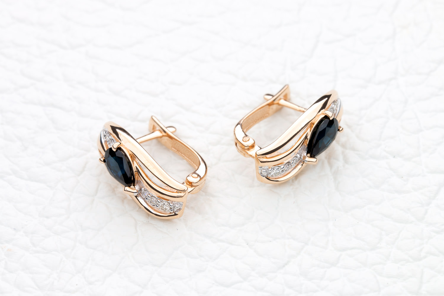 Мастера компании NEWGOLD, приложив всё свое мастерство и искусство, создали для Вас на нашем собственном производстве Серьги из красного золота с 2 сапфирами и 10 бриллиантами.