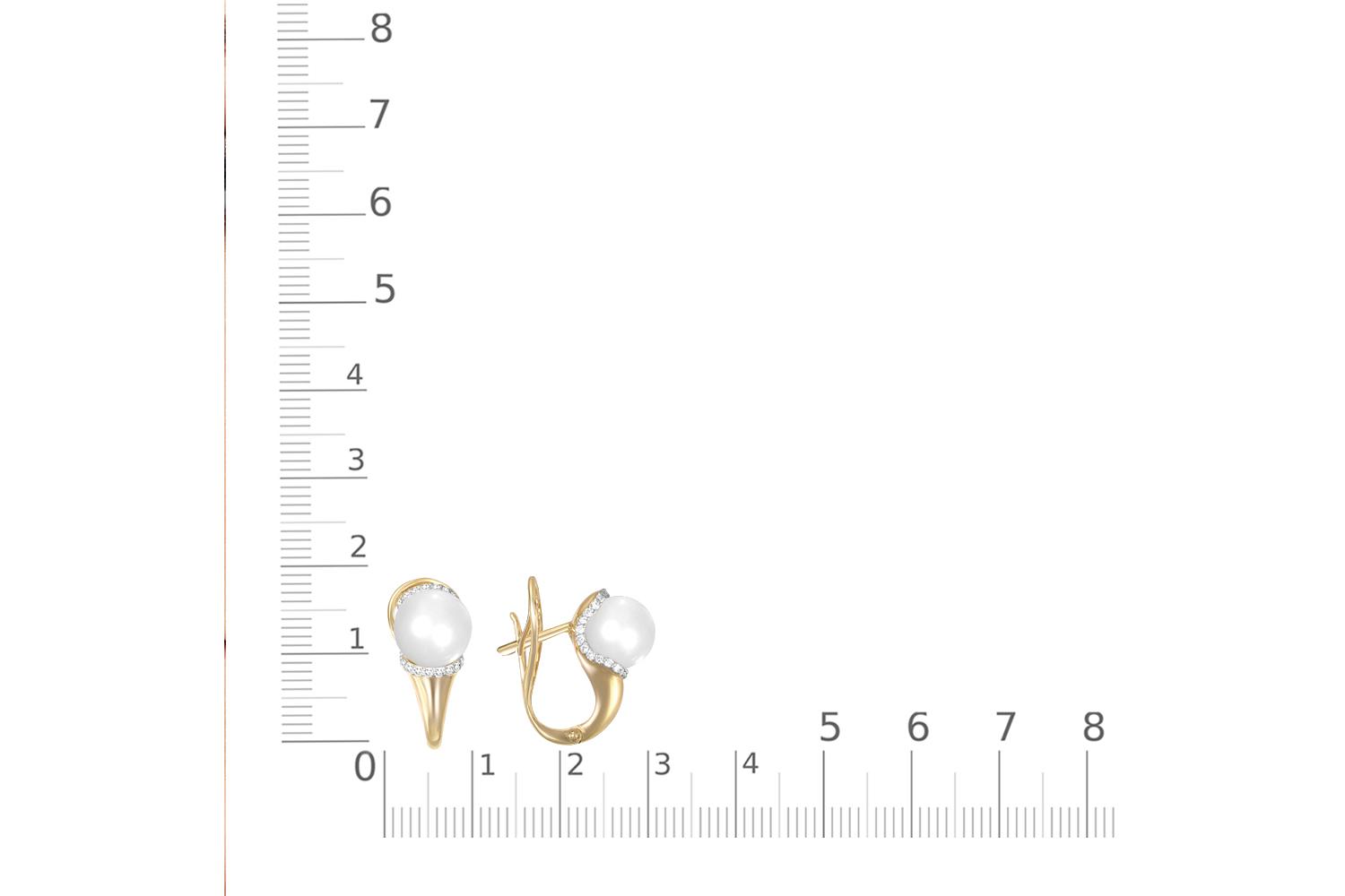 Жемчуг белый натуральный, количество 2 шт., огранка круг, размер 8ˣ8,5 ; Бриллиант, количество 60 шт., огранка Кр-17, размер 0,9 мм, цвет 2, чистота 2, вес 0,215 карат.