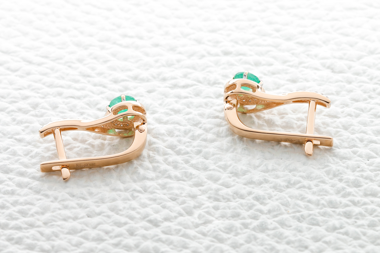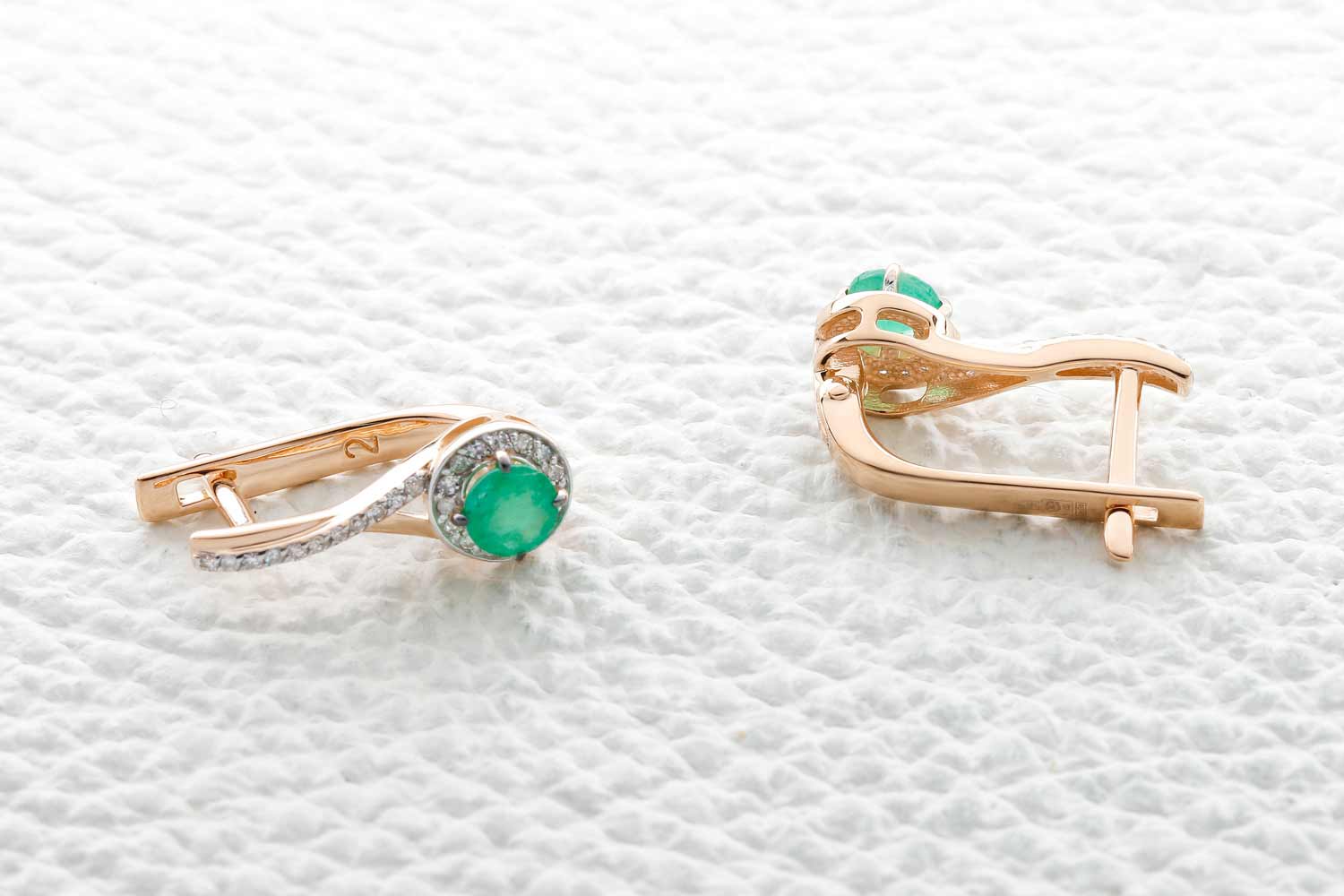 Мастера компании NEWGOLD, приложив всё свое мастерство и искусство, создали для Вас на нашем собственном производстве Серьги из красного золота с 2 изумрудами и 52 бриллиантами.
