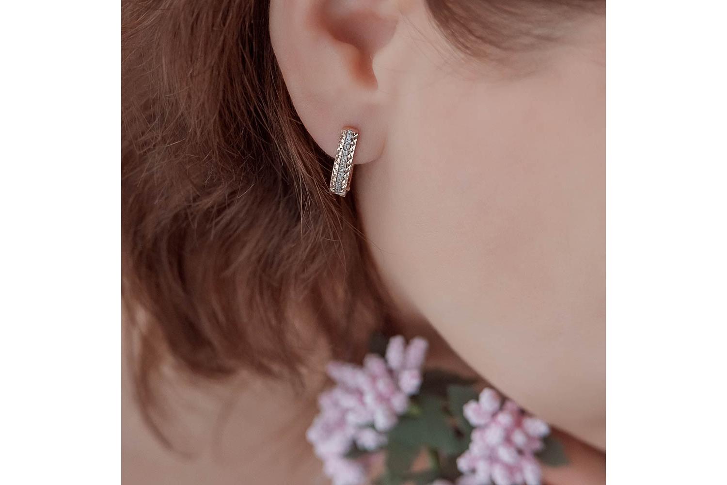 Мастера компании NEWGOLD, приложив всё свое мастерство и искусство, создали для Вас на нашем собственном производстве Серьги Дорожки из красного золота с 28 бриллиантами.