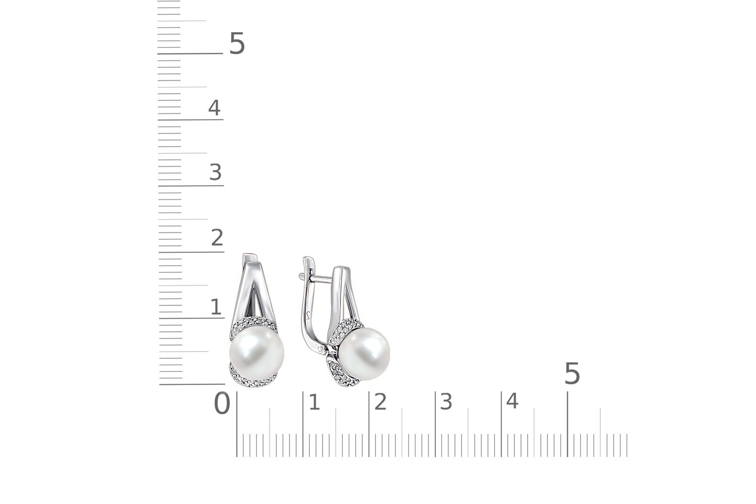 Жемчуг белый натуральный, количество 2 шт., огранка круг, размер 8ˣ8,5 ; Бриллиант, количество 84 шт., огранка Кр-17, размер 0,9 мм, цвет 2, чистота 2
