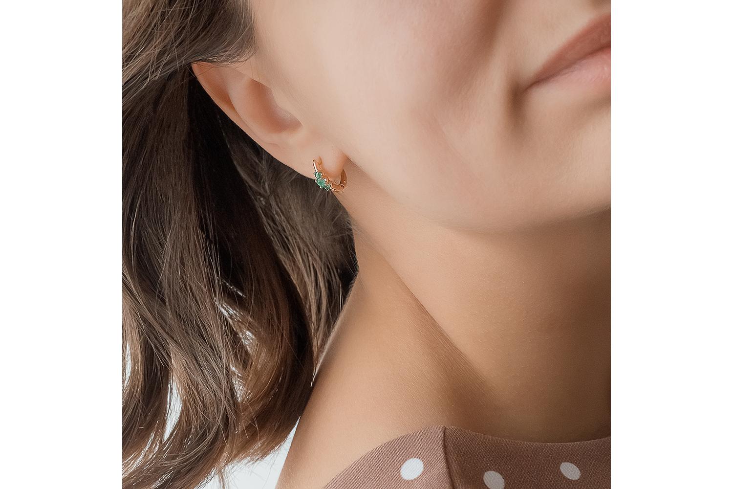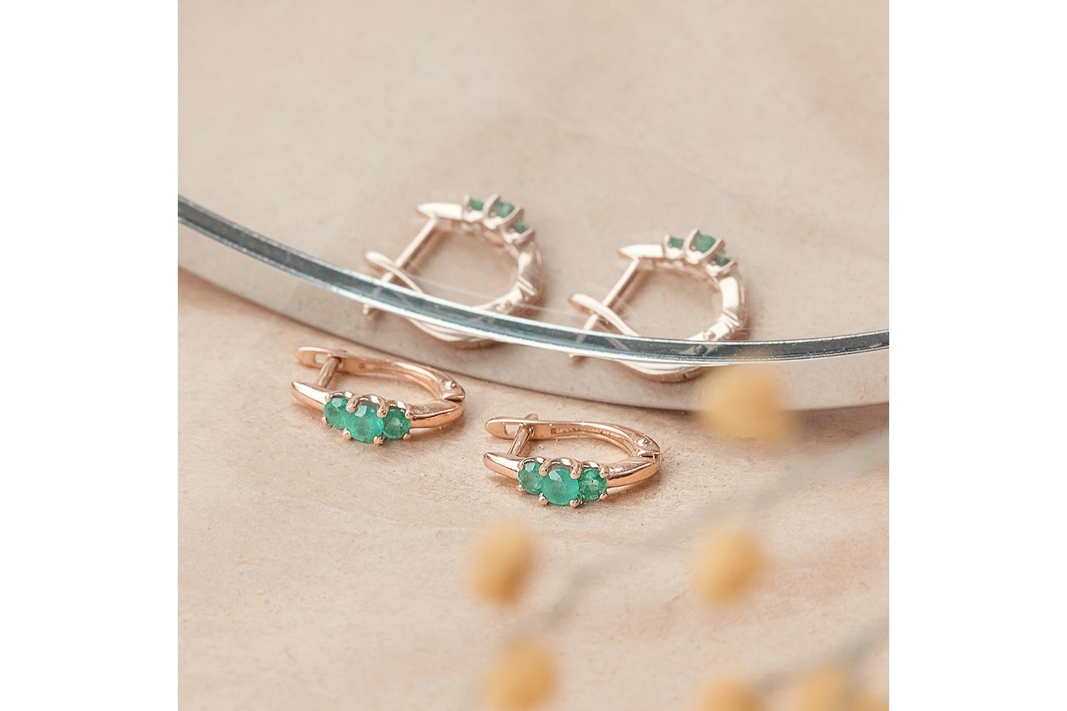 Классические серьги из красного золота 585 пробы с 6 изумрудами - это прекрасный аксессуар на каждый день и на любой торжественный случай. Изумруд в центре изделия обладает глубоким зеленым цветом, который символизирует роскошь и благородство, мудрость и проницательность. Это самоцвет надежды, мудрости и хладнокровия, индикатор женского постоянства. Английская застежка на сережках – одна из самых популярных на сегодня.