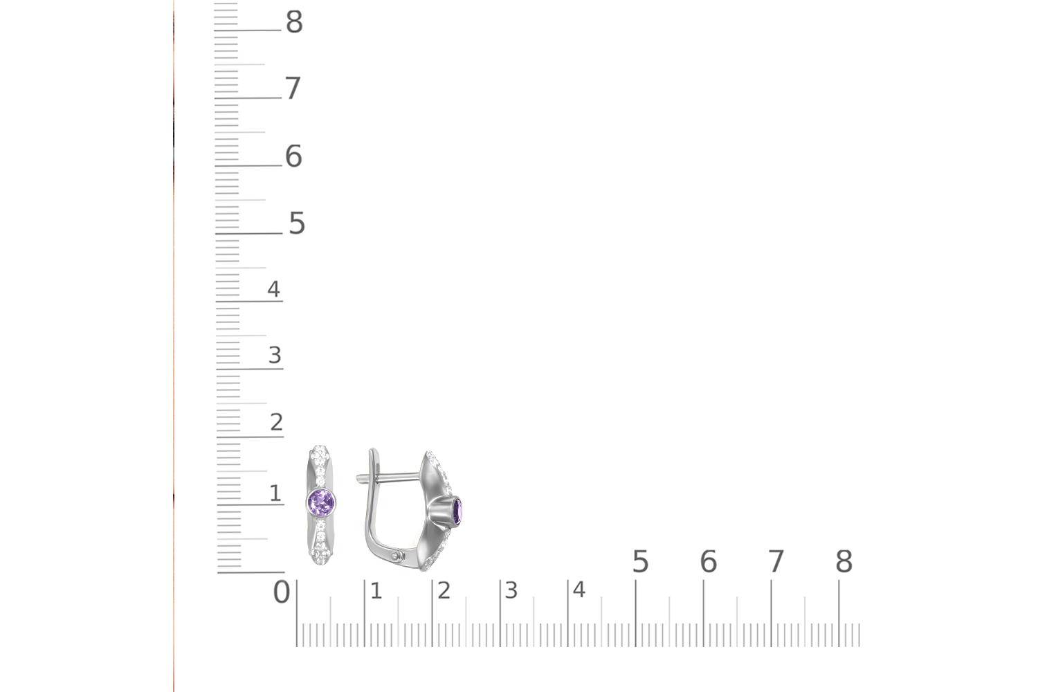Аметист натуральный, количество 2 шт., огранка круг, размер 3 мм ; Фианит б/цв, количество 4 шт., огранка круг, размер 1,25 мм ; Фианит б/цв, количество 20 шт., огранка круг, размер 1 мм