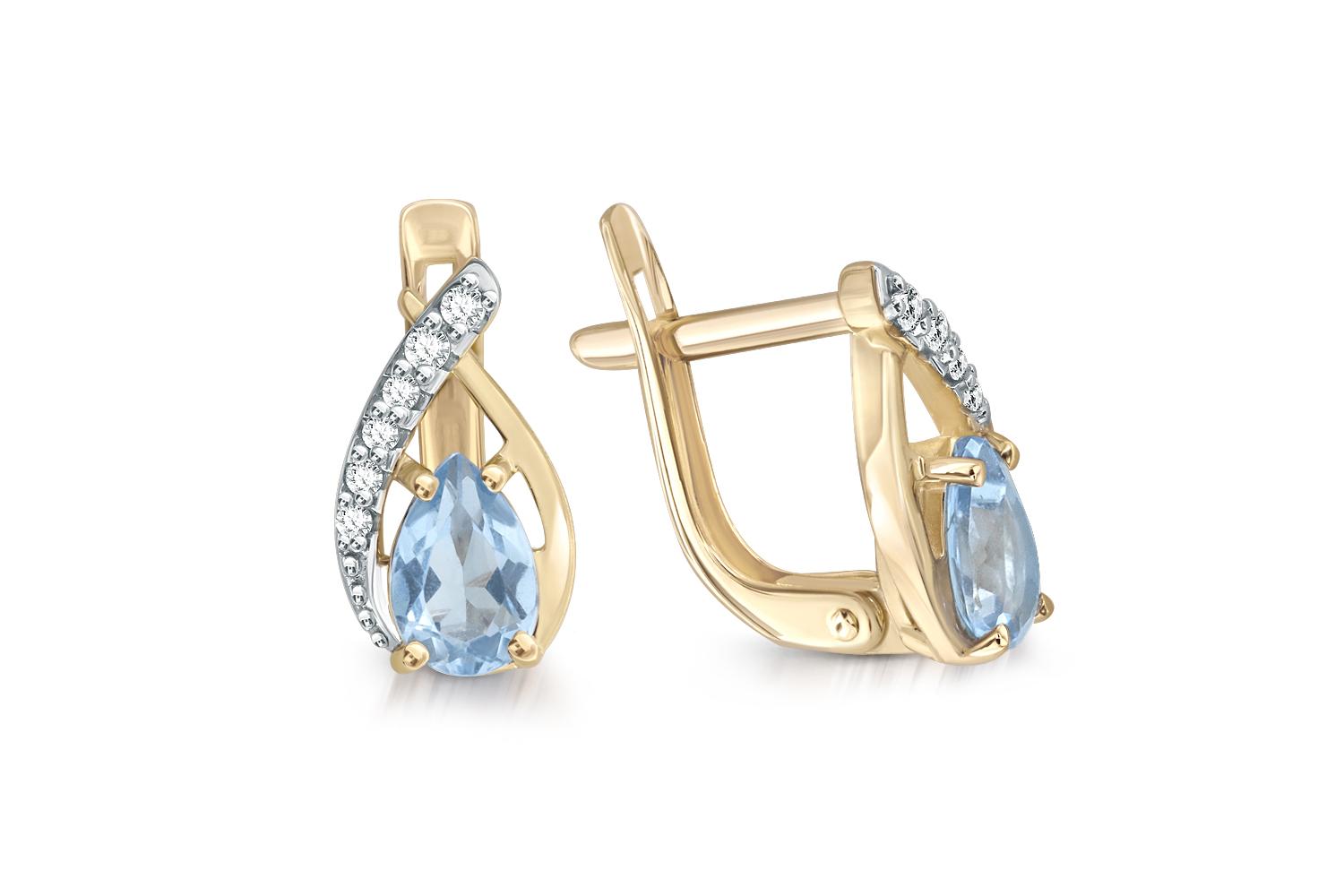 Мастера компании NEWGOLD, приложив всё свое мастерство и искусство, создали для Вас на нашем собственном производстве Серьги из жёлтого золота с 2 топазами sky и 12 фианитами.