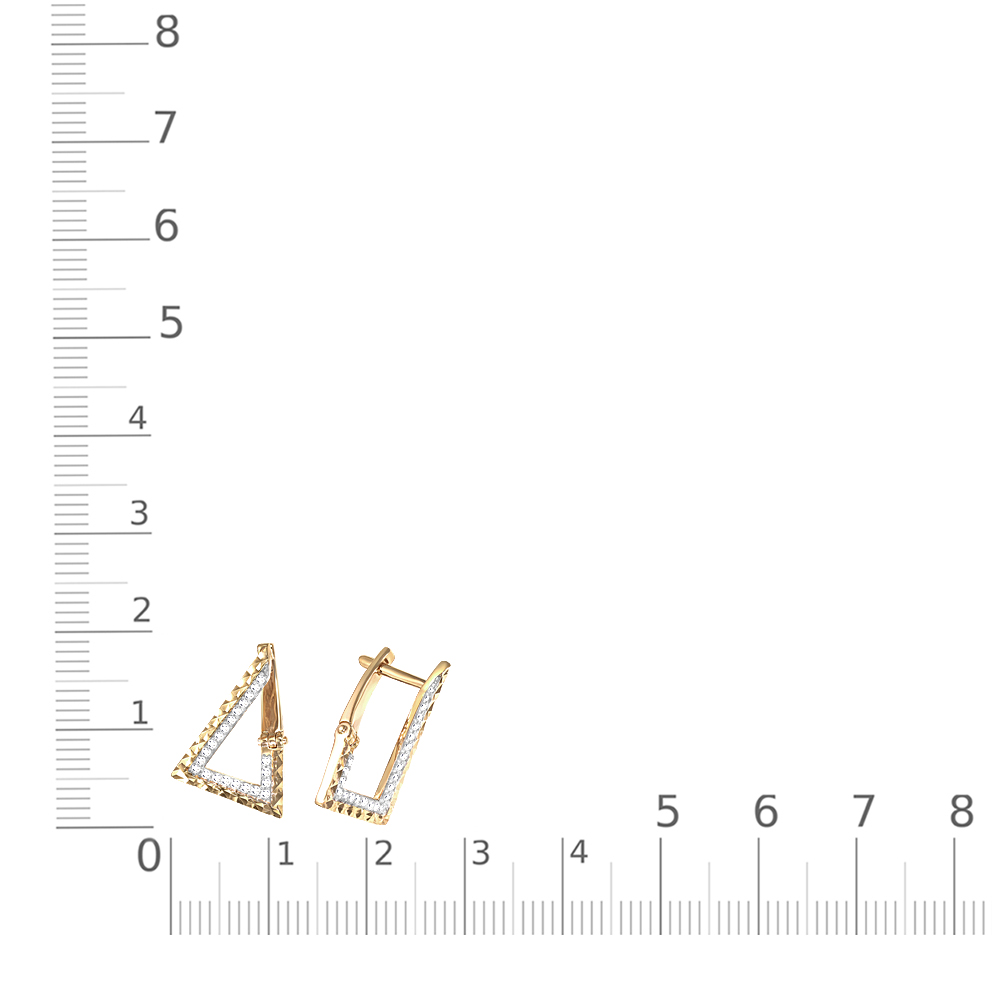 Мастера компании NEWGOLD, приложив всё свое мастерство и искусство, создали для Вас на нашем собственном производстве Серьги Треугольники из жёлтого золота с 44 фианитами.