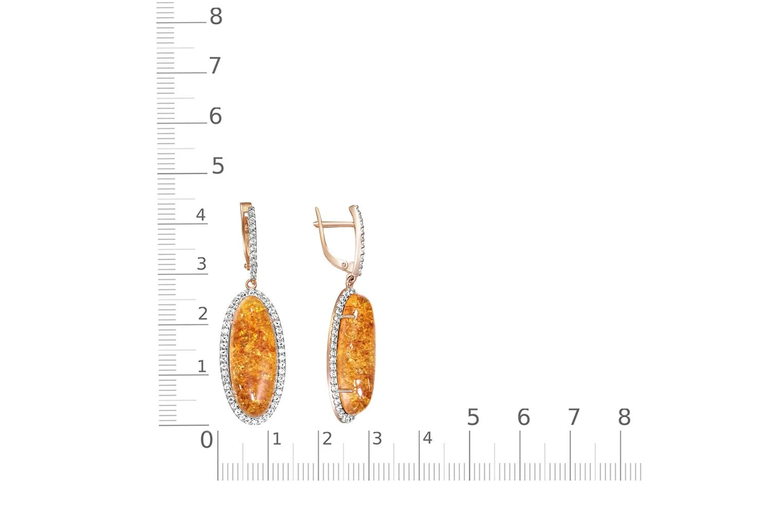 Мастера компании NEWGOLD, приложив всё свое мастерство и искусство, создали для Вас на нашем собственном производстве Серьги из красного золота с янтарём и 108 фианитами.