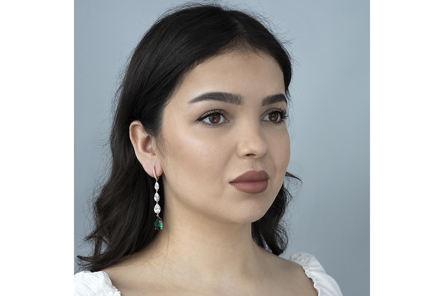 Шикарные длинные сережки идеально сочетаются с кольцами и браслетами, закрывая потребности завершенного образа с дополнением с колье на цепочке с кулоном. Изумрудный цвет камня придаст благородность любому стилю одежды. NEWGOLD* - российская компания г. Кострома по производству ювелирных украшений.