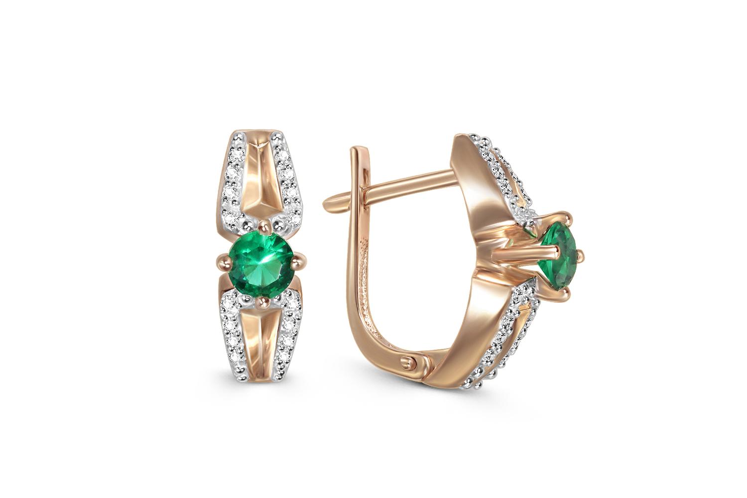Мастера компании NEWGOLD, приложив всё свое мастерство и искусство, создали для Вас на нашем собственном производстве Серьги из красного золота с 2 изумрудами и 32 фианитами.