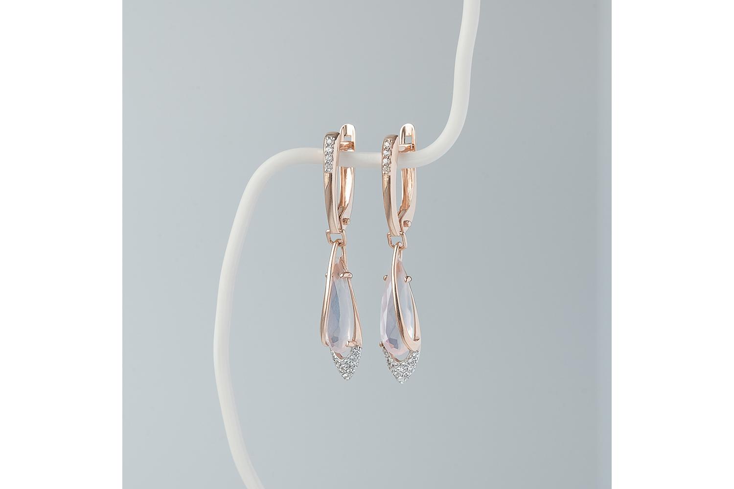 Мастера компании NEWGOLD, приложив всё свое мастерство и искусство, создали для Вас на нашем собственном производстве Серьги из красного золота с 2 кварцами и 32 фианитами.